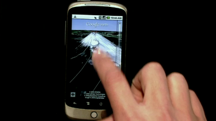 19h43 : Google Earth pour Android avec vue 3D et commandes vocales ! Google amène la technologie des ordinateurs dans le smartphone, les mêmes fonctions sont présentes.