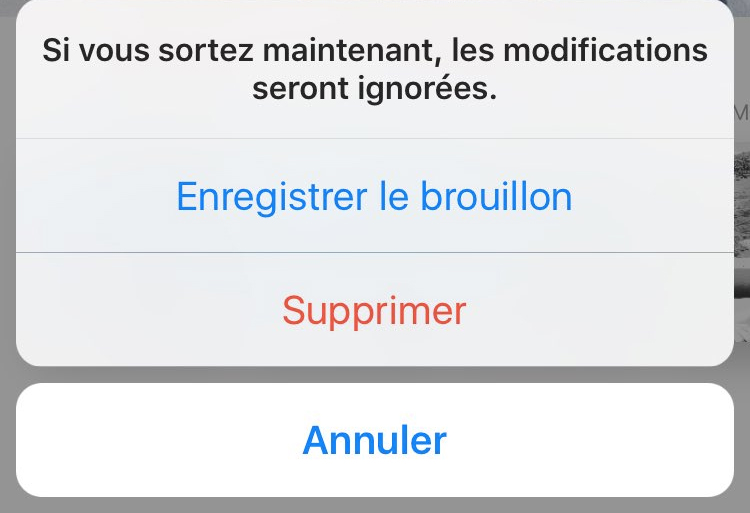 Pour l’heure, seuls quelques internautes – essentiellement utilisateurs d’Instagram pour iOS – témoignent de l’apparition d’une option permettant, lorsqu’ils souhaitent quitter le réseau social avant d’avoir publié leur cliché. Outre les options « Supprimer » et « Annuler » apparait la mention « Save Draft » (Enregistrer le brouillon), qui permet d’enregistrer des photographies dans un onglet spécifique. Instagram n’a toutefois évoqué aucune date de déploiement global pour cette nouvelle option, sur ses formules Android comme iOS.