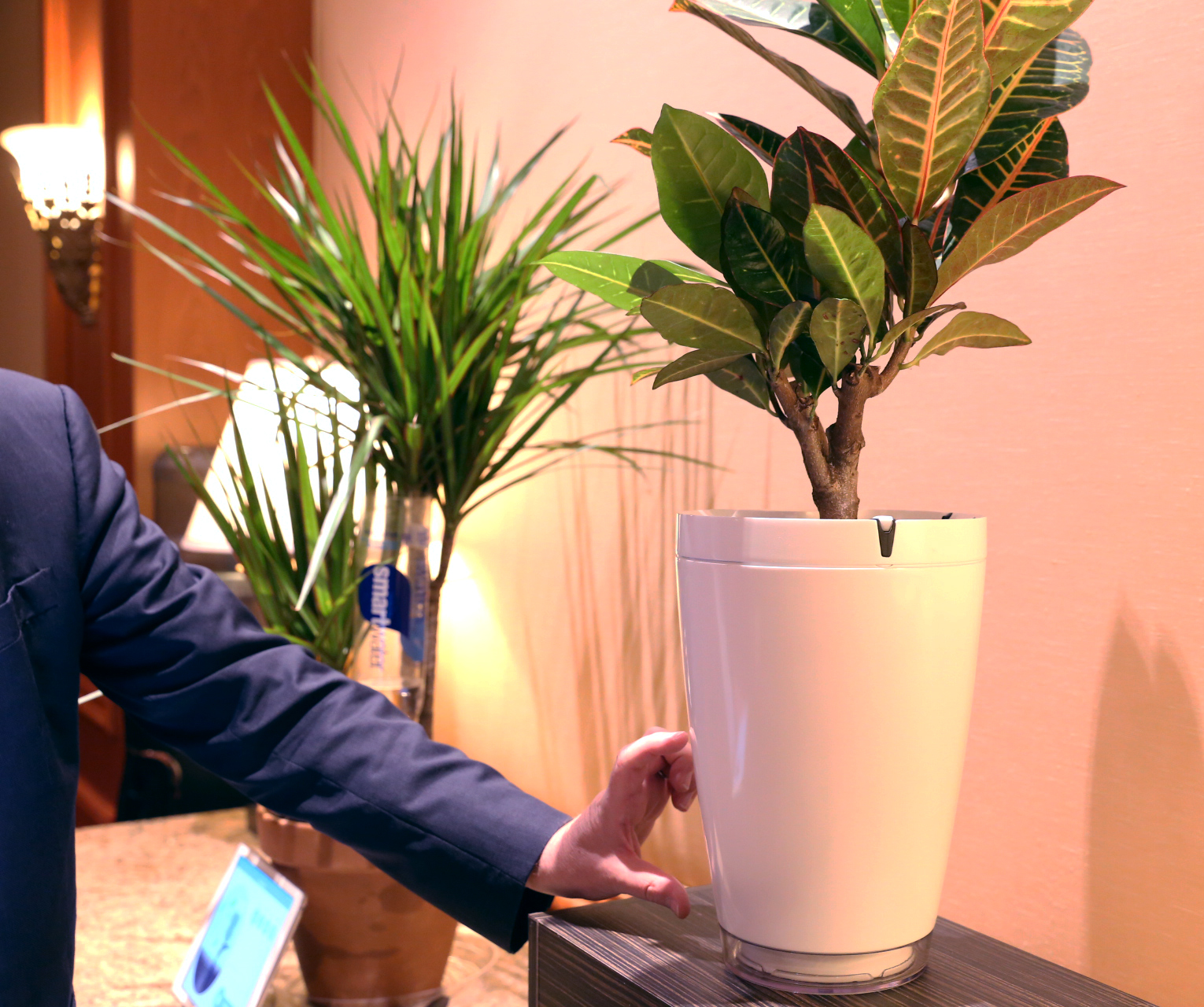 Les informations récoltées par ses capteurs sont fournies à l’utilisateur par le biais d’alertes sur le mobile (Android ou iOS), tandis qu’un témoin lumineux situé sur le pot indique, en vert, que tous les paramètres sont satisfaisants et, en rouge, que l’un d’entre eux doit être modifié ou que la réserve d’eau est bientôt épuisée. On notera que le Pot ne fonctionne pas sur secteur, mais qu’il est alimenté par deux piles AA, pour une autonomie promettant d’atteindre environ un an.