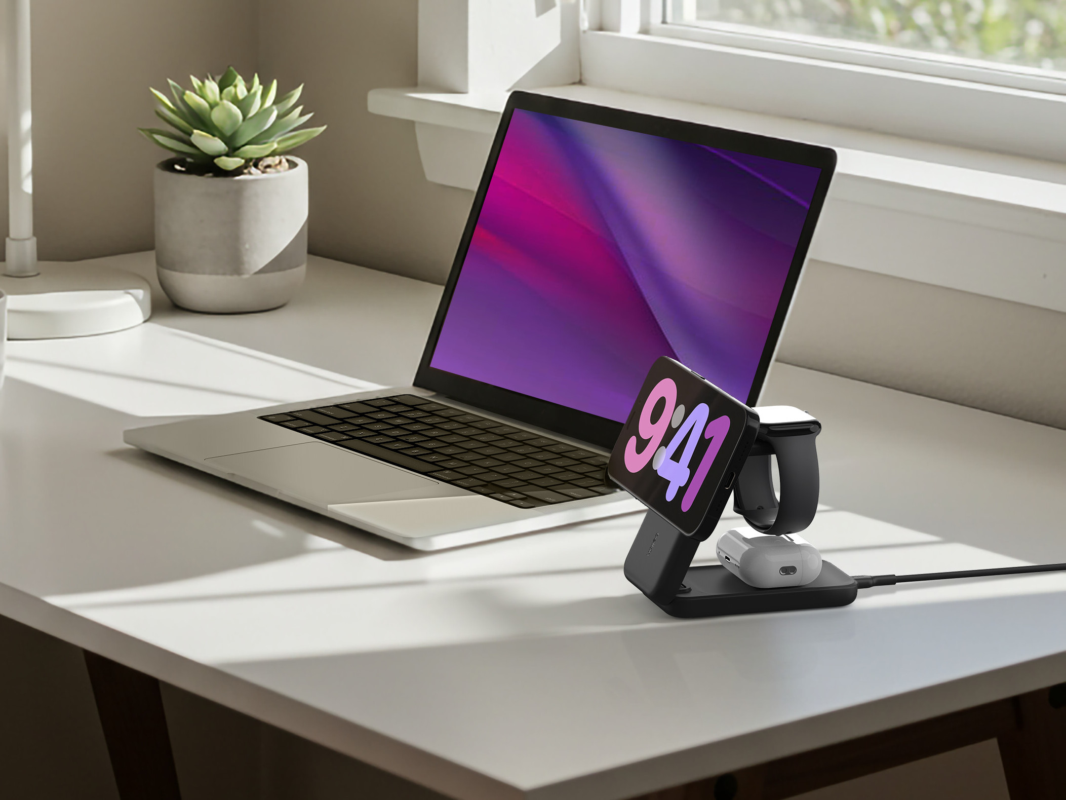 - La version 3-en-1, qui rajoute un galet de charge pour une Apple Watch