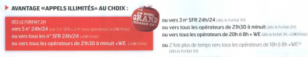 Par contre je tiens à faire noté que contrairement à ce qui a dit les 5 numéros illimité il faudra payé 12€ en plus du forfait donc pour le plus petit 1h ça ferra près de 55€ SFR se fou quand même du monde, pourtant c'est un client depuis plus de 6ans qui parle