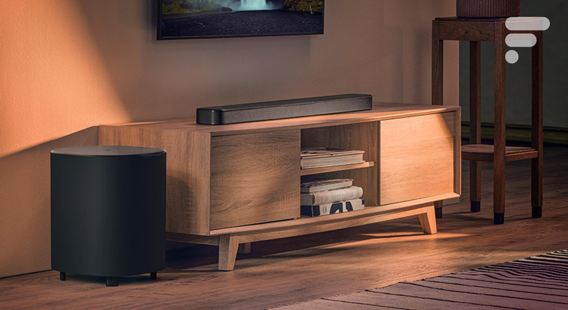 JBL n’a pas manqué d’intégrer plusieurs technologies maison, à l’image de la MultiBeam 3.0, gage d’une meilleure spatialisation, ou encore du PureVoice 2.0, qui renforce l’intelligibilité des dialogues en fonction du son ambiant de la scène et du volume de la barre de son. La connectivité est de son côté très complète avec le Wi-Fi et le Bluetooth. AirPlay 2, Chromecast, Spotify Connect, Tidal Connect, Roon Ready… La barre de son fonctionne avec tous les écosystèmes et services de streaming musical.