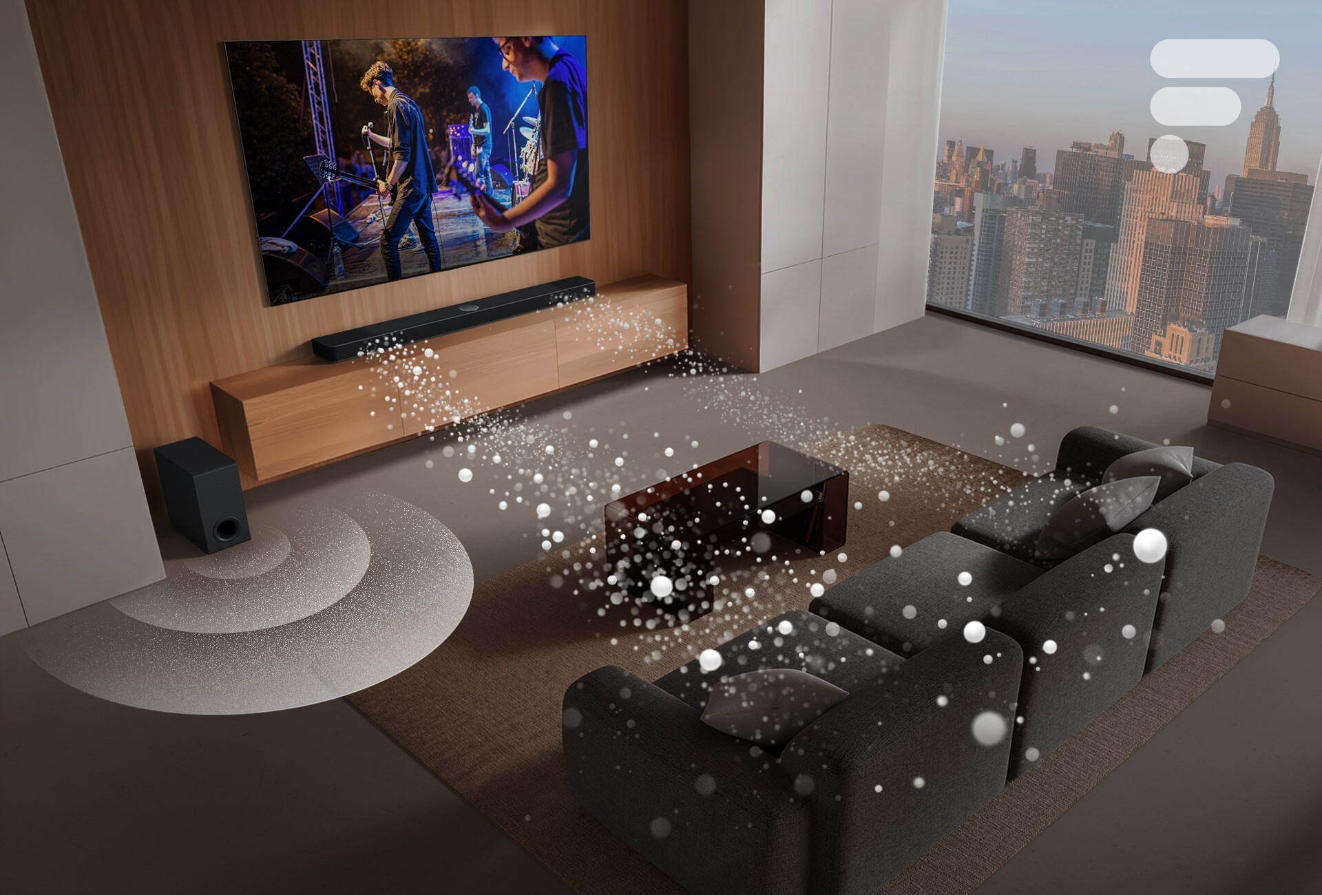 La LG S40T, ce sont un peu les cordes vocales que le tĂ©lĂ©viseur attendait, avec 300 Watts RMS et un système 2.1 canaux qui apporte profondeur, relief et spatialisation du son. Le caisson de basse sans fil donne de la texture aux explosions, aux riffs de guitare et permet d’entendre correctement les murmures. La technologie AI Sound pro, dĂ©tecte le contenu et adapte les rĂ©glages pour le profil le plus adaptĂ©.