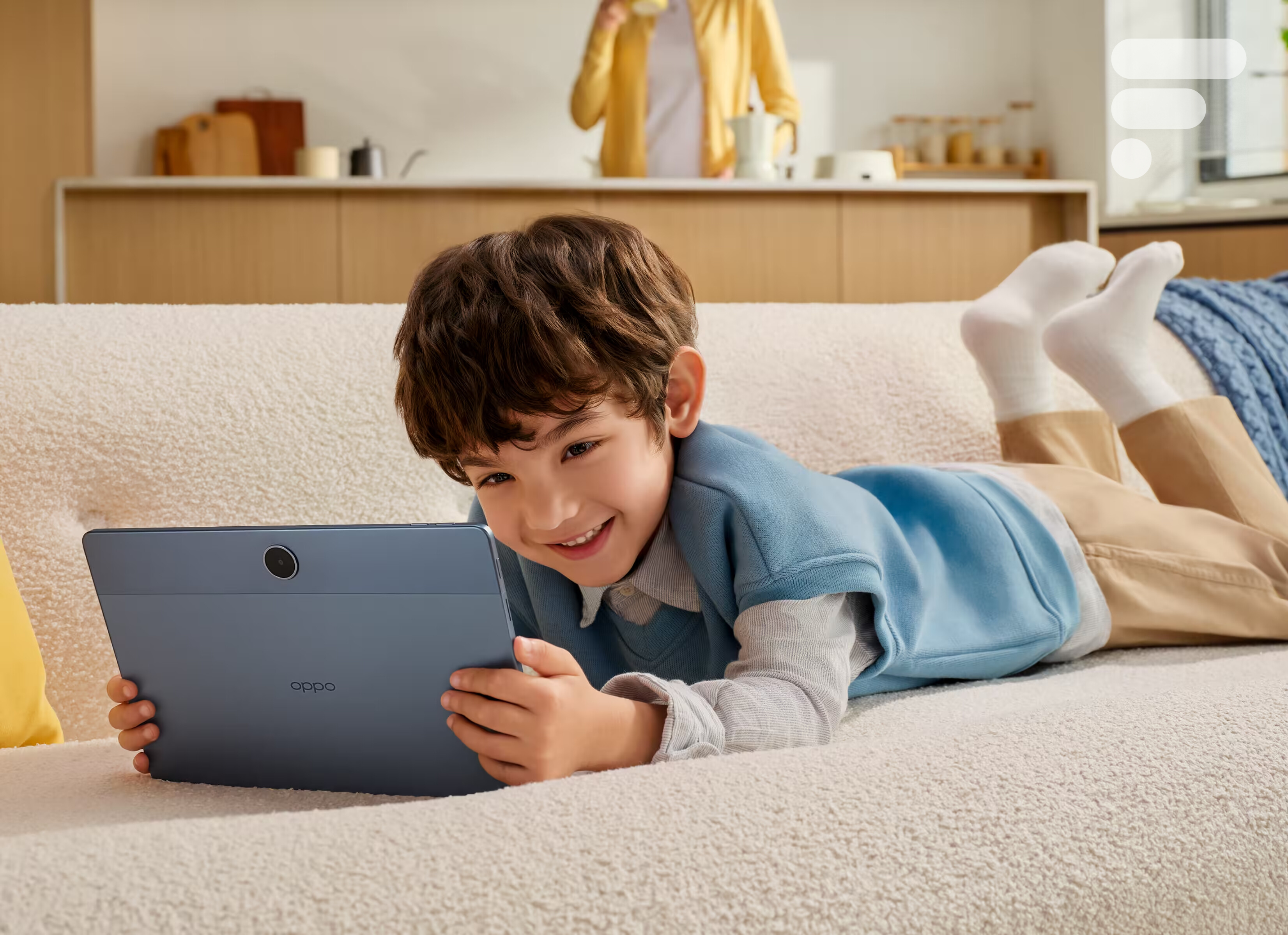 La partie son est assurée par 4 haut-parleurs diffusant avec immersion grâce à la technologie maison Omnibearing Sound Field qui laisse le choix au système sonore de s’adapter à la stéréo surround pour un son plus riche. Le design tout en métal est bien fini et assez léger même dans de petites mains avec son poids d’environ 530 grammes. Le mode Enfants est bien pensé, avec une interface personnalisable pour contrôler les applis, la durée d’utilisation, et les contenus accessibles à l’instar des logiciels de Google.