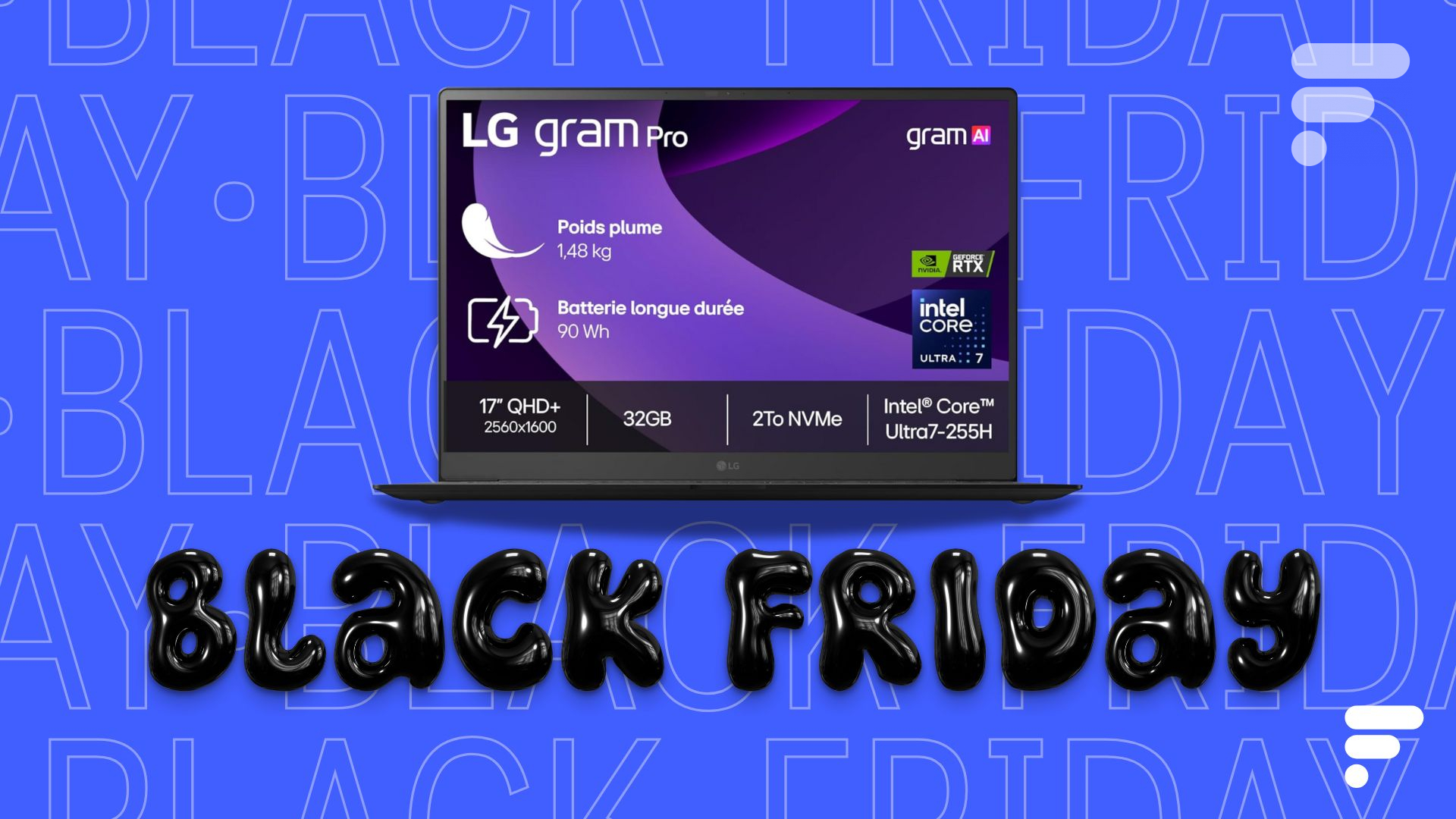 On ne présente plus la gamme de PC portables ultra-fins LG Gram, qui se différencient des concurrents par leur poids plus que contenu et leur épaisseur moindre. Désormais, on a aussi droit à des variantes Pro, qui embarquent des processeurs plus puissants et même des cartes graphiques performantes signées Nvidia. Le modèle LG Gram Pro 17 renferme par exemple un couple Intel Core Ultra 7-RTX 5050, qui devrait ravir les travailleurs et les gamers. Bonne nouvelle, il est proposé à -20 % en cette Black Friday Week.