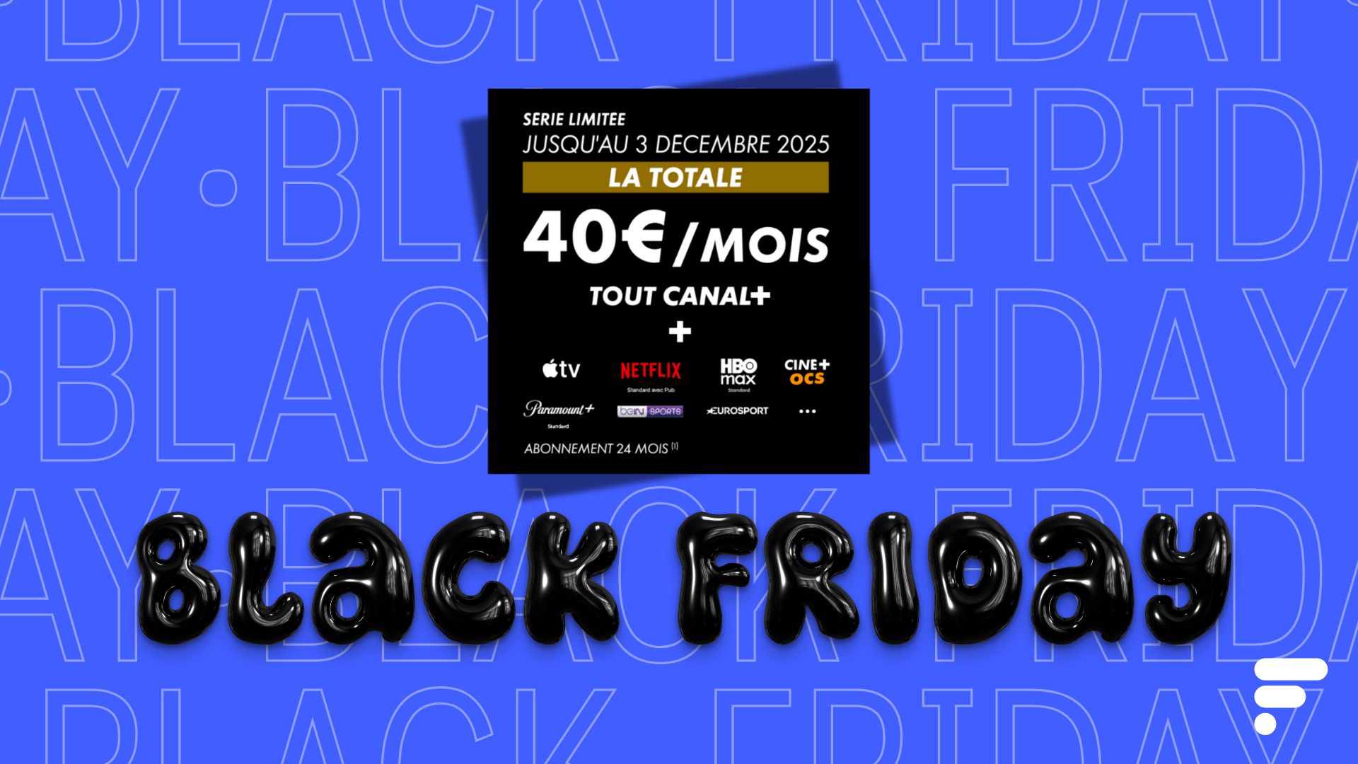 Une tripotée de plateformes de streaming, de nombreuses chaînes thématiques (cinéma, documentaires, sport…), les compétitions de foot majeures… Voici tout ce que Canal+ propose actuellement dans son offre « La Totale », qui porte très bien son nom. En pleine Black Friday Week, cet abonnement ultra-complet est en plus proposé à un prix hyper avantageux : 40 euros par mois.