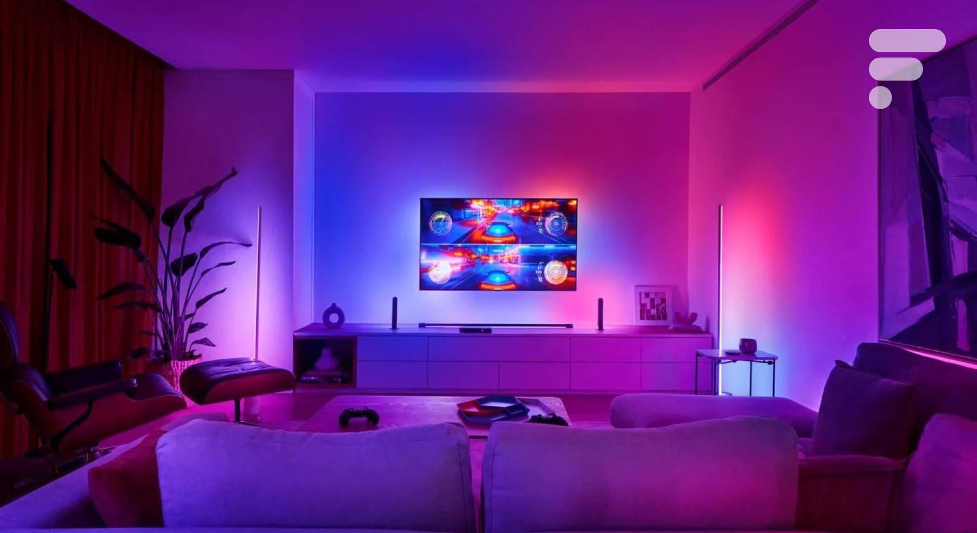 Que celles et ceux qui n’ont pas le budget nécessaire pour s’offrir un TV Philips doté de la technologie Ambilight se rassurent : il est possible de recréer un effet similaire grâce à des rubans lumineux intelligents Philips Hue ainsi qu’avec un boîtier de synchronisation HDMI, qui, relié à un TV et à une console ou une box TV, peut faire réagir des éclairages Hue en temps réel au contenu affiché à l’écran. Et ça tombe bien, une Philips Hue Play HDMI Sync Box 8K et une bande lumineuse Philips Hue Gradient Lightstrip se trouvent actuellement dans un pack en promotion.