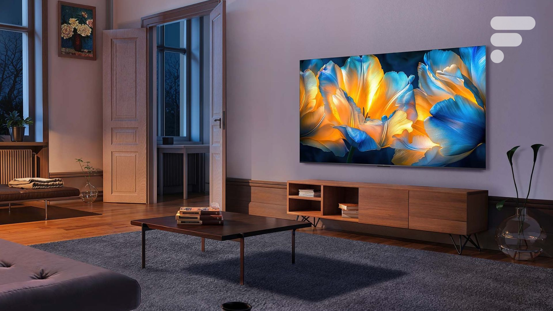 - Une dalle QD Mini LED de 55 pouces