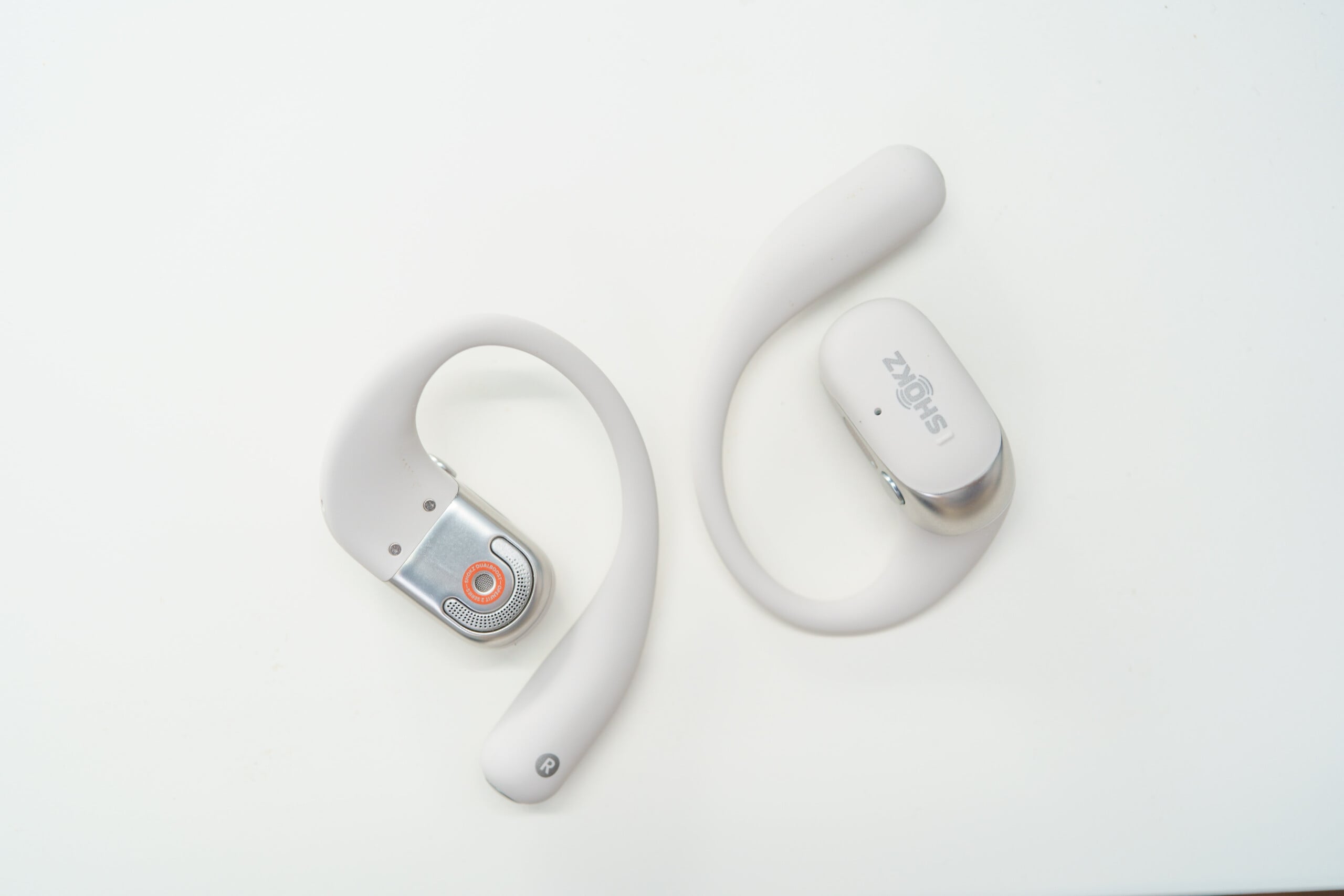 Shokz ne s’est pas embêté avec son design et a repris les éléments qui avaient fonctionné sur les premières versions des OpenFit. Chaque oreillette est en forme de crochet et elles viennent se placer autour de l’oreille.