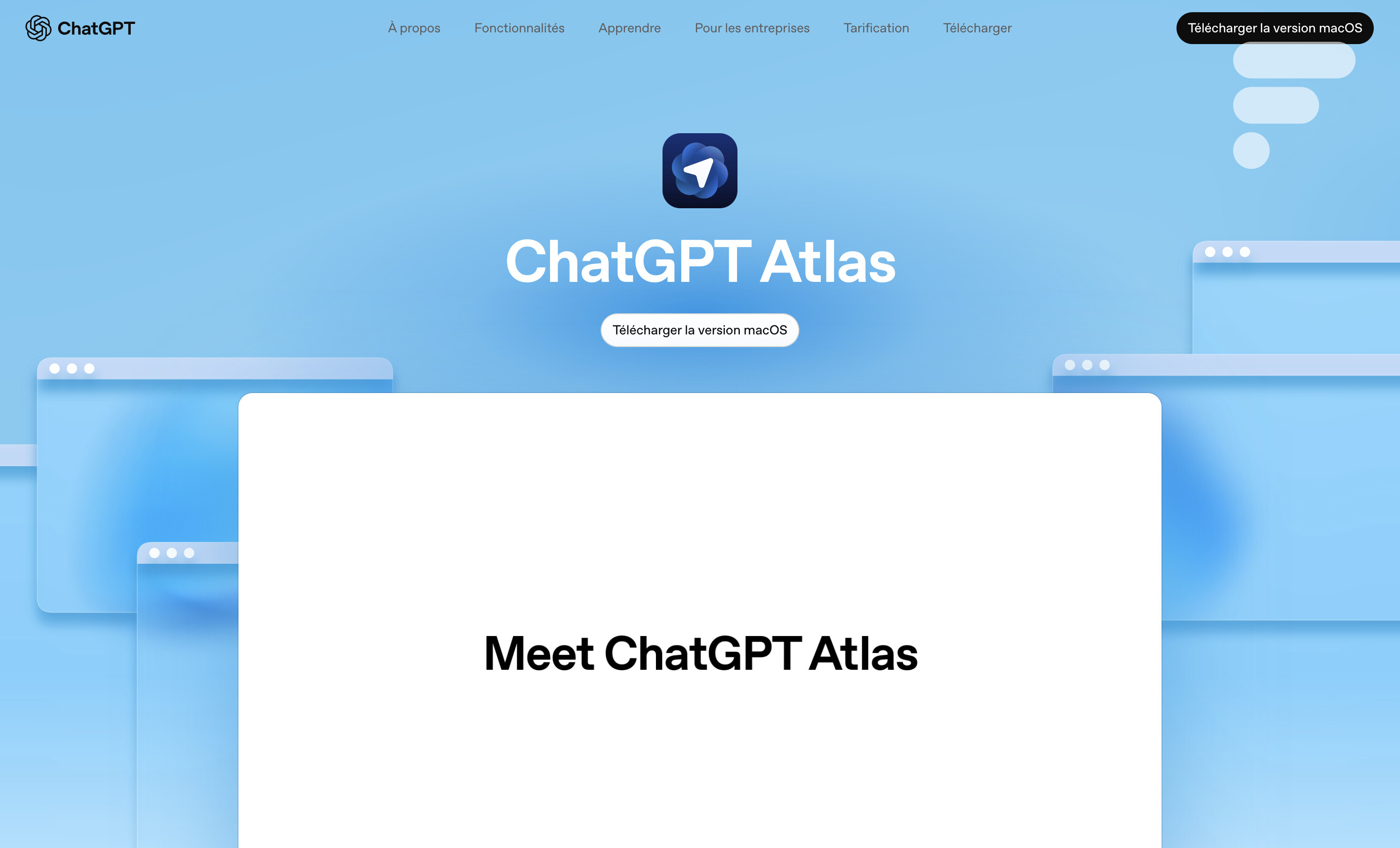 Et désormais OpenAI vient de lancer ChatGPT Atlas, son premier navigateur web dopé à l’IA, dans une offensive directe contre Google Chrome et sa domination du marché (plus de 3 milliards d’utilisateurs).