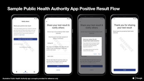 Les illustrations présentées ici par Google et Apple ne sont que des exemples de base. Les autorités pourront en effet changer certains éléments de l’interface en fonction de leur besoin. Les deux entreprises partagent à cet effet les outils de développement (SDK pour Android et Xcode pour iOS) pour que chaque pays puisse s’approprier cette infrastructure.