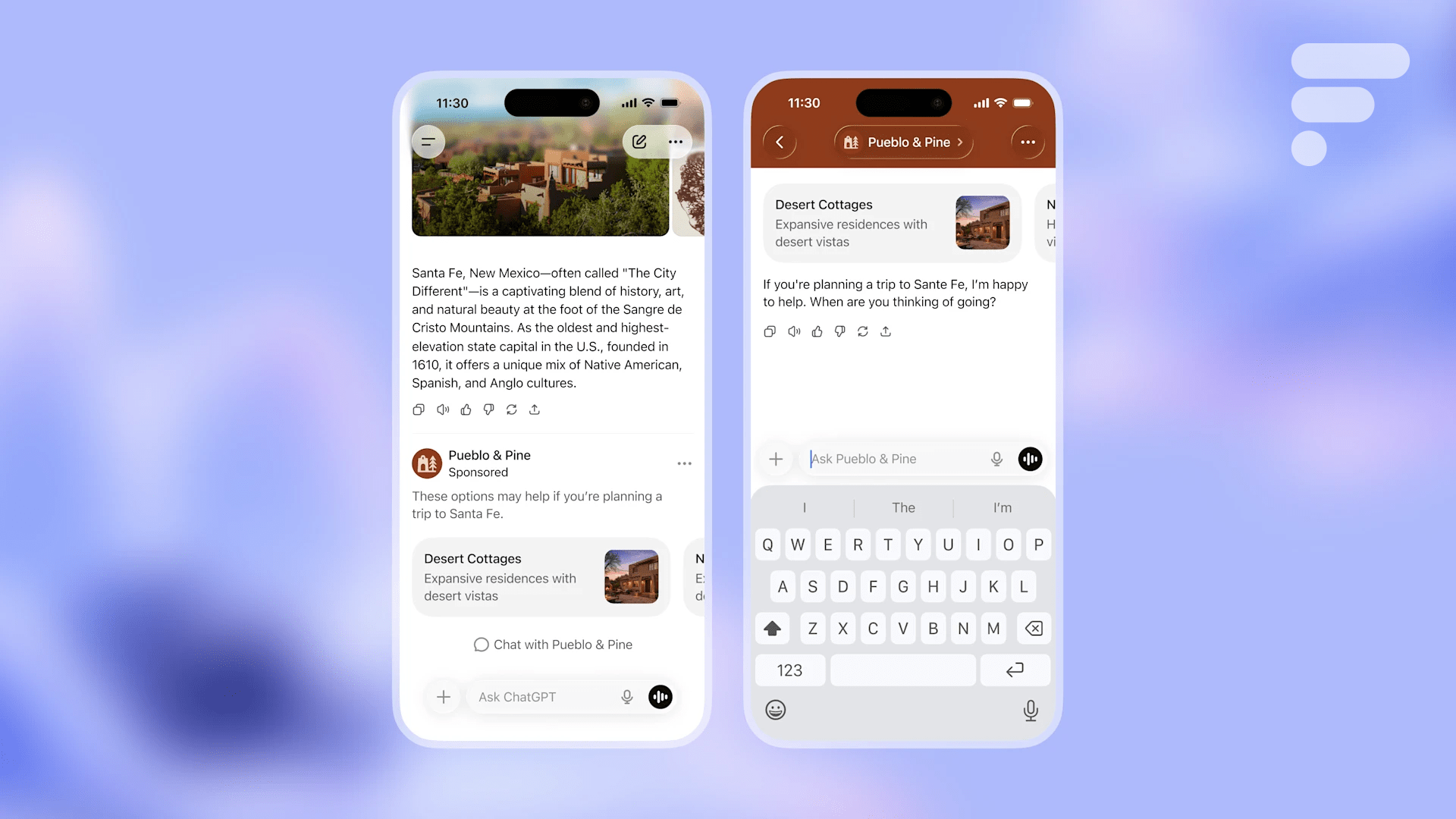 Le fonctionnement est direct. Vous demandez des idées de dîner ? Une marque de sauce piquante apparaît. Vous préparez un voyage à Santa Fe ? Une agence de voyage vous propose ses services.