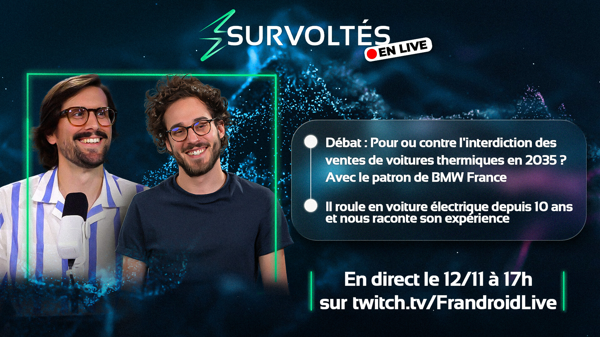 Fort de sa nouvelle formule, qui met l’accent sur des castings 5 étoiles et une récurrence mensuelle, votre programme Survoltés sort le grand jeu pour sa 19e édition. Aujourd’hui, dès 17h sur la chaîne Frandroidlive, retrouvez-nous autour d’un débat qui s’annonce passionnant entre quatre protagonistes tous issus du milieu automobile.