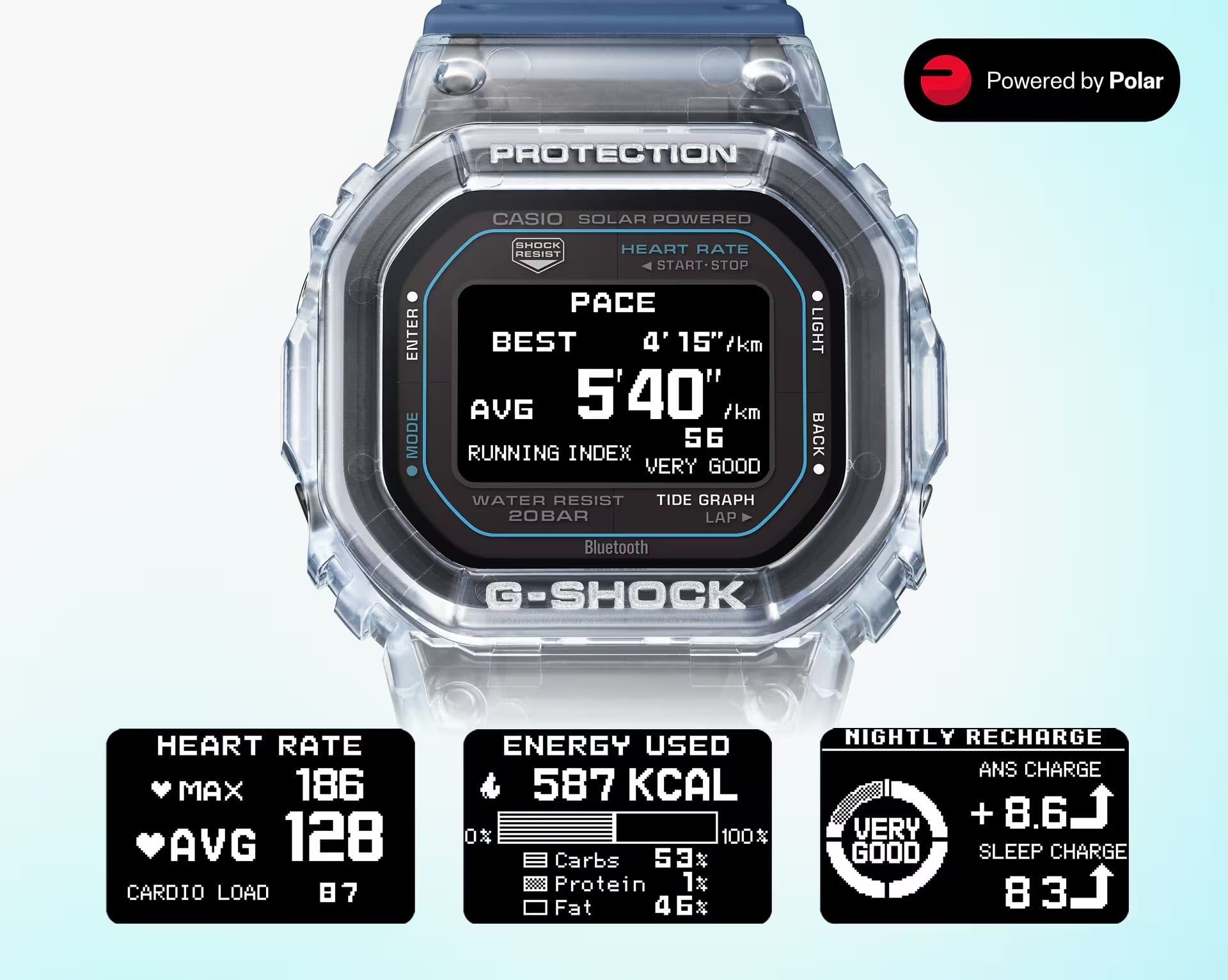 Casio a confié l’analyse des données au finlandais Polar, déjà partenaire sur les modèles DW-H5600 et GBD-H2000 depuis 2023.