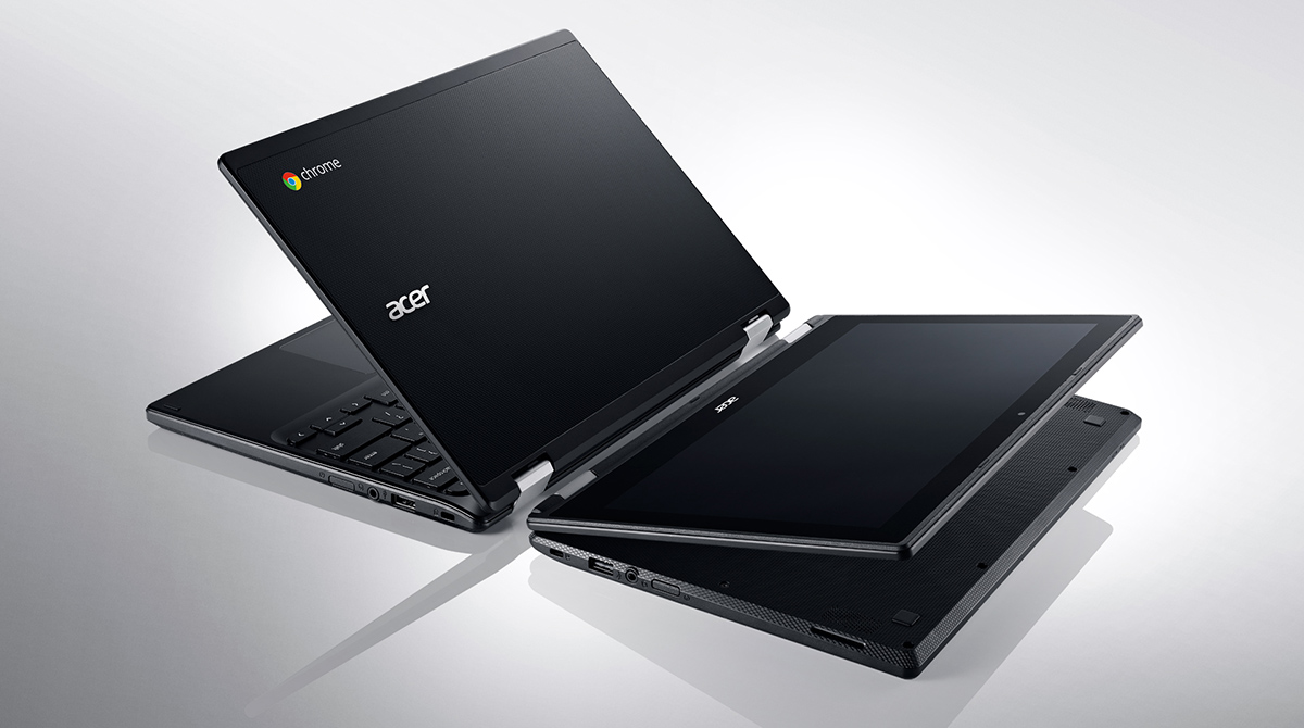 Rien d’extraordinaire à première vue chez ce nouveau Chromebook, qui inclut un écran tactile LED de 11,6 pouces avec une définition de 1366 x 768 pixels (HD). Le tout nouvel Acer Chromebook R11 intègre des connecteurs USB 3.0, du WiFi ac, et un CPU Intel Celeron Braswell. Dévoilé en avril, le Celeron Braswell signe le passage des cœurs Silvermont à Airmont en 14nm, ainsi qu’un GPU qui passe de la Gen7 à la Gen8 (Broadwell). L’autonomie annoncée est d’environ 10 heures, ce qui est correct pour un Chromebook.