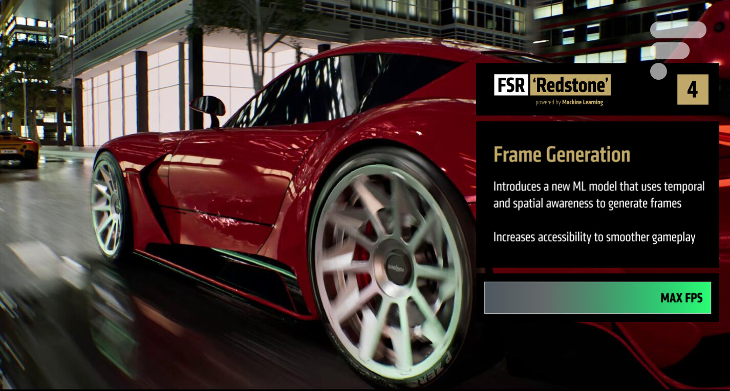 Ce fut la première étape du grand projet FSR Redstone, un nom de code qui englobe de nouvelles technologies intégrées au FSR pour améliorer les performances et la qualité d’image de vos jeux, toujours grâce au machine learning.