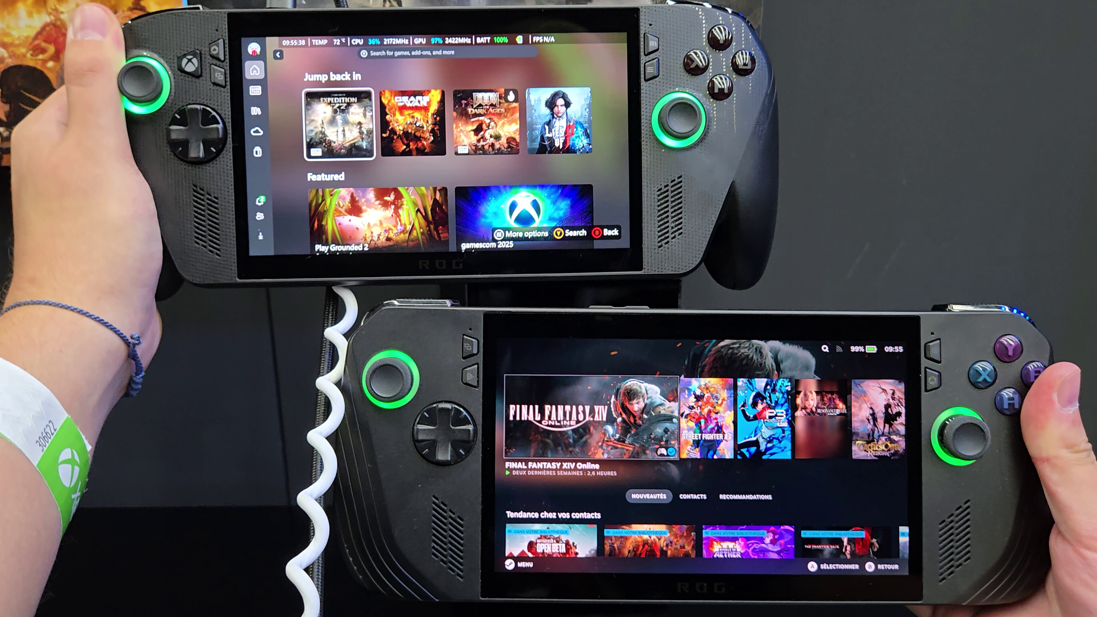 La première chose que nous avions besoin d’établir est assez simple : le poids des consoles. Alors que nous avons pris l’habitude du grand format d’un Steam Deck ou de l’épaisseur de la ROG Ally X, les premières images des ROG Xbox Ally donnaient l’impression que ces PC consoles portables seraient particulièrement lourds et encombrants.