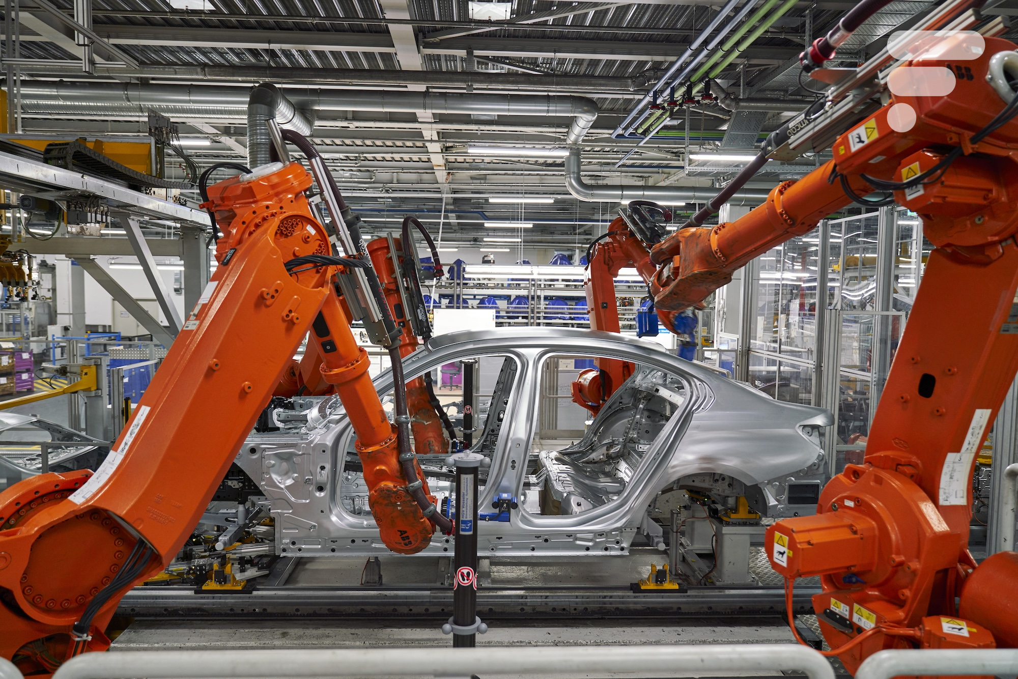 Visiter l’usine actuelle est une belle preuve de l’automatisation galopante des usines automobiles. D’innombrables robots orange (environ 1 200 rien que pour l’atelier de carrosserie) palpent, agrippent, soudent, transfèrent, et scannent l’intégralité des éléments des voitures : l’image éculée du ballet ne s’avère pas si loin de la vérité.