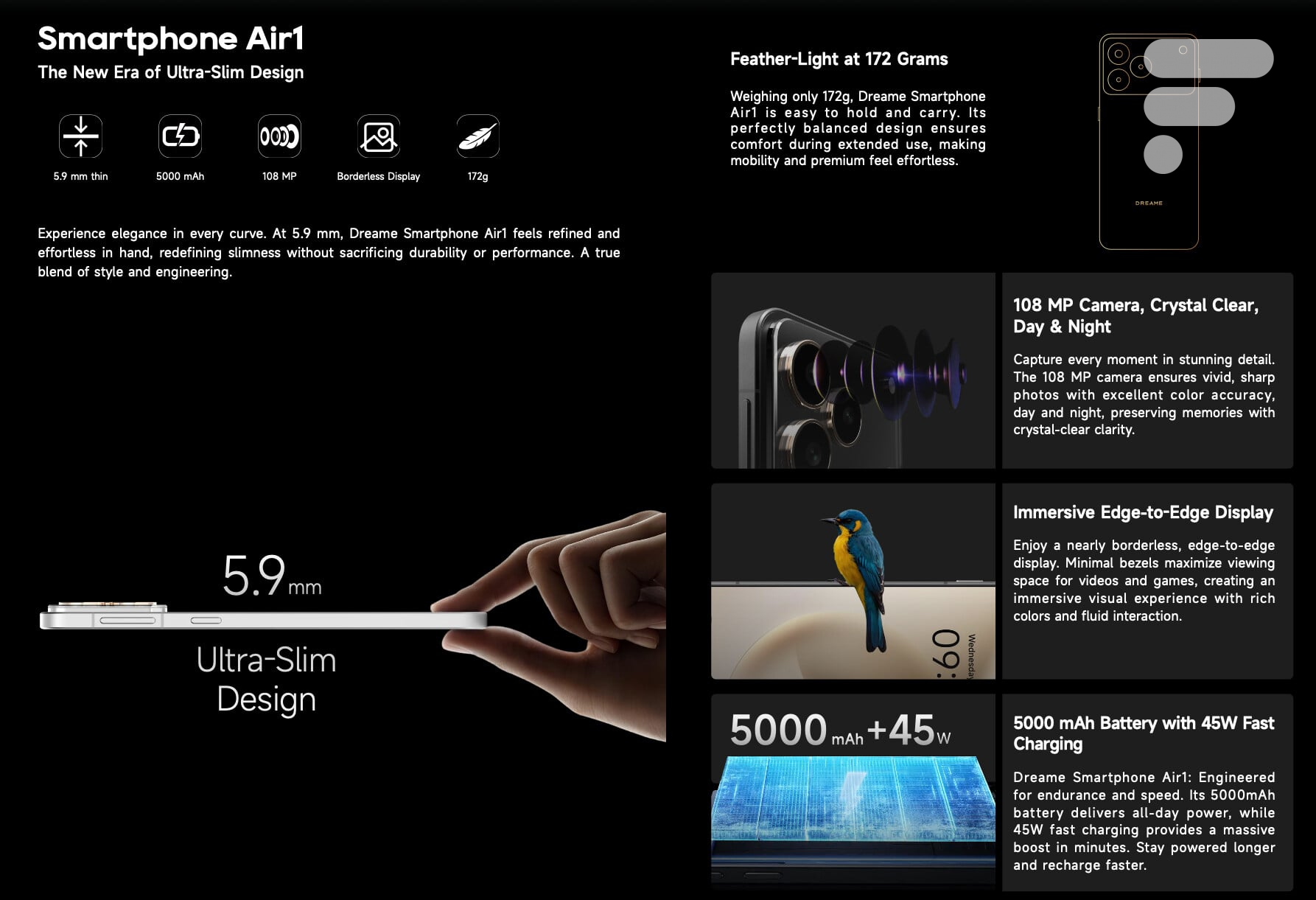 Une slide, manifestement pas destinée au grand public tout de suite, dévoile le Dreame Smartphone Air1. Le produit n’était pas physiquement présent sur le stand à Las Vegas, ce qui suggère un lancement imminent, probablement pour le Mobile World Congress de Barcelone fin février. Mais la fiche technique visible sur l’image suffit à lever un sourcil.