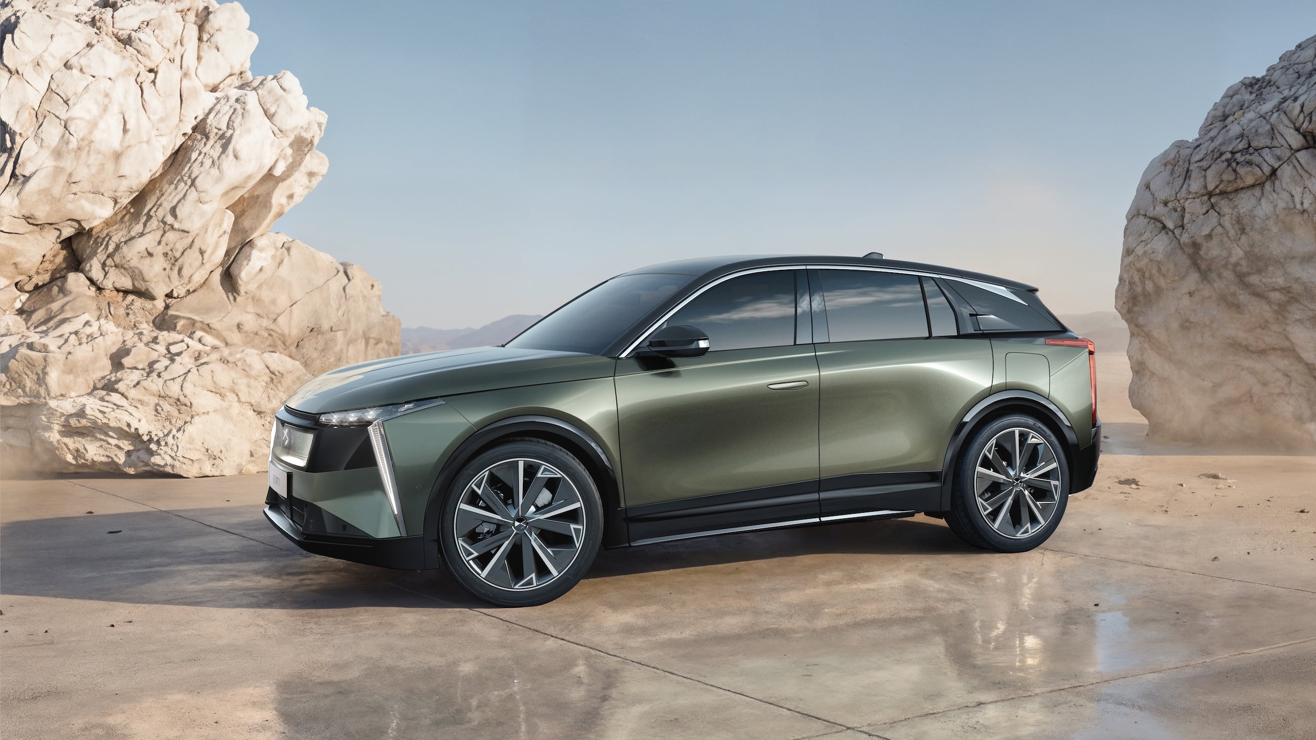 Le toit très plongeant, se terminant par un spoiler proéminent, prouve que l’aérodynamisme a joué un rôle crucial dans le design général : DS est fier d’annoncer un coefficient de pénétration dans l’air (Cx) de 0,26 (SCx : 0,69), bénéfique au silence à bord et à l’autonomie.