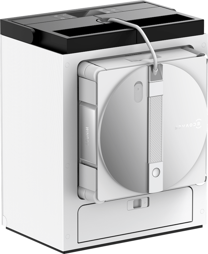 Le réservoir interne passe à 60 ml, une capacité confortable qui permet de traiter de grandes surfaces sans interruption. Couplé à une pression de nettoyage accrue, ce système promet de venir à bout des traces les plus tenaces, comme les résidus de pluie ou les traces de doigts, sans laisser de voile après le passage du robot.