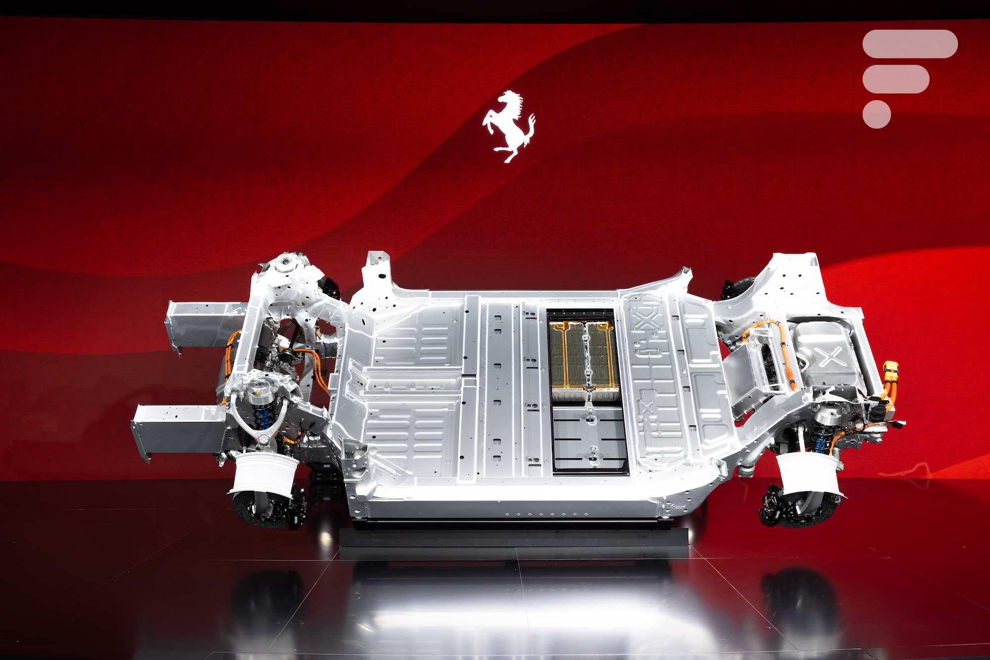 Si le modèle définitif ne sera présenté qu’en 2026, Ferrari détaille déjà les bases techniques de cette nouvelle ère dans un communiqué de presse : châssis, moteurs, batterie, électronique de puissance… tout a été développé en interne, et affiche des technologies dernier cri. Accrochez-vous, c’est du lourd.