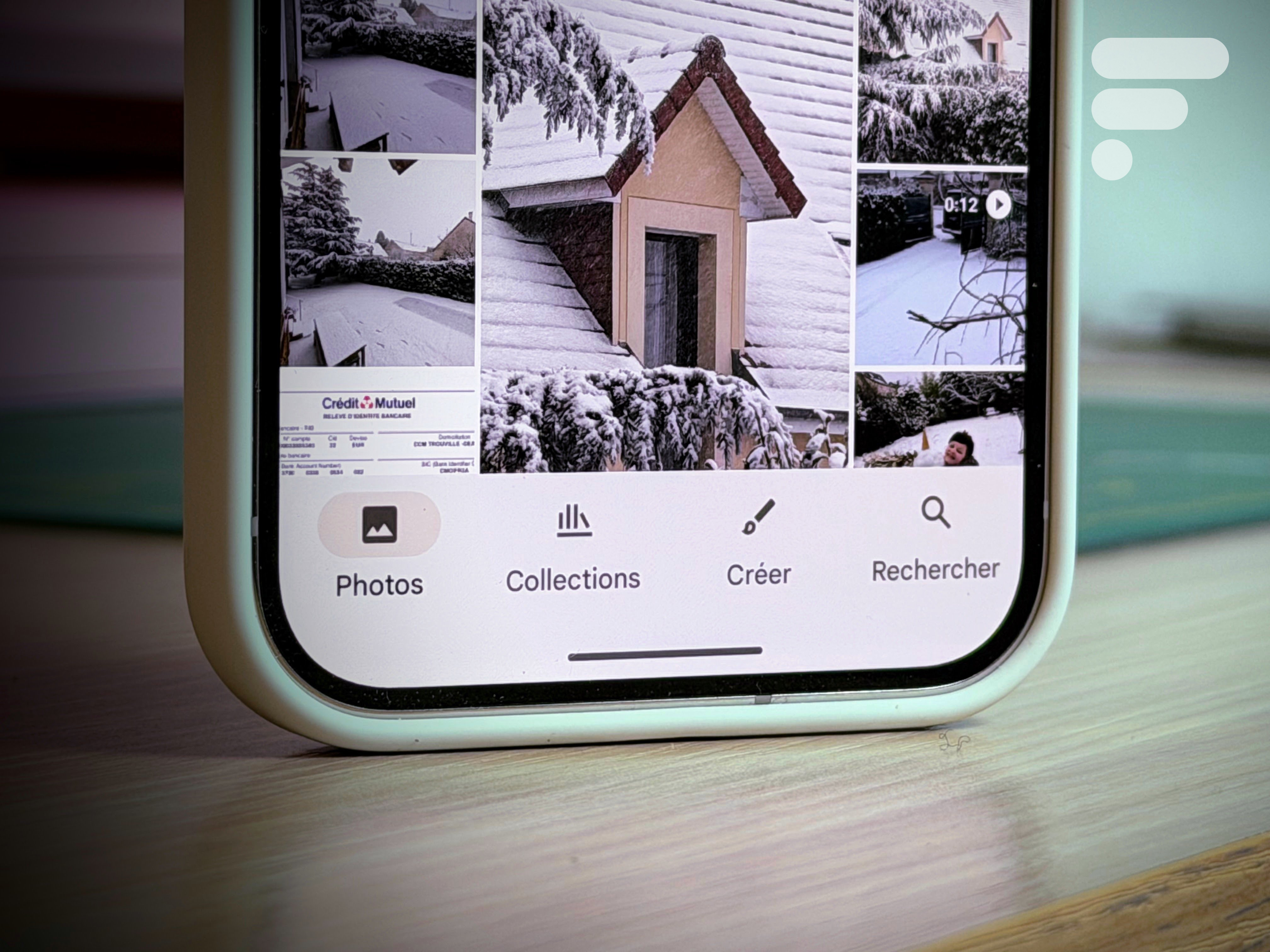 Cette nouvelle interface regroupe désormais les onglets principaux — Photos, Collections et Créer — dans une pilule flottante qui semble léviter au-dessus du contenu. Fini le bandeau rigide qui tronquait le bas de votre flux de photos. Cette structure gagne en transparence et en finesse, permettant de voir davantage de photos lors du défilement.