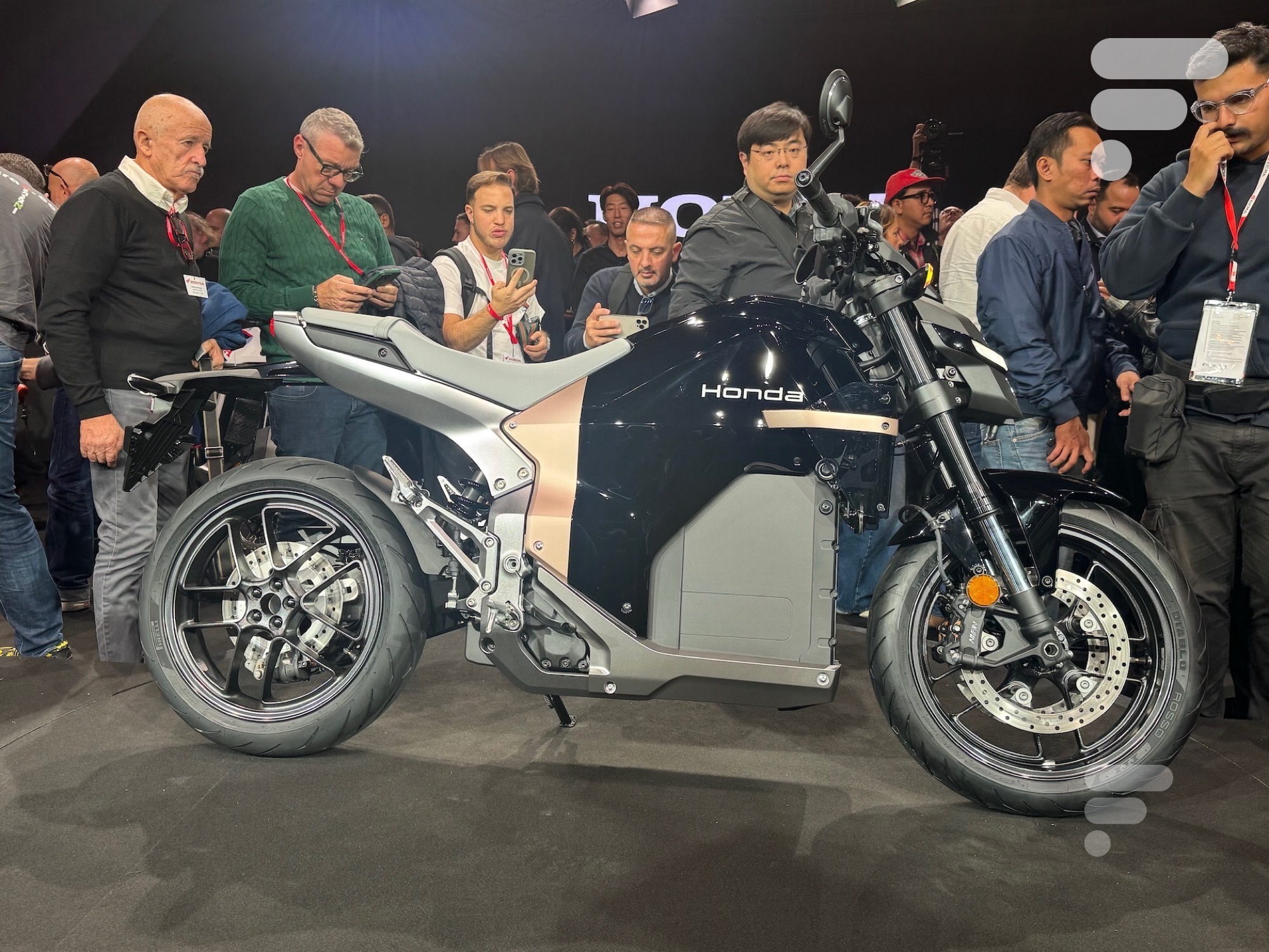 Le design minimaliste, sans cadre apparent, met en valeur la batterie structurelle et inaugure une identité visuelle spécifique aux futures motos électriques de la marque.