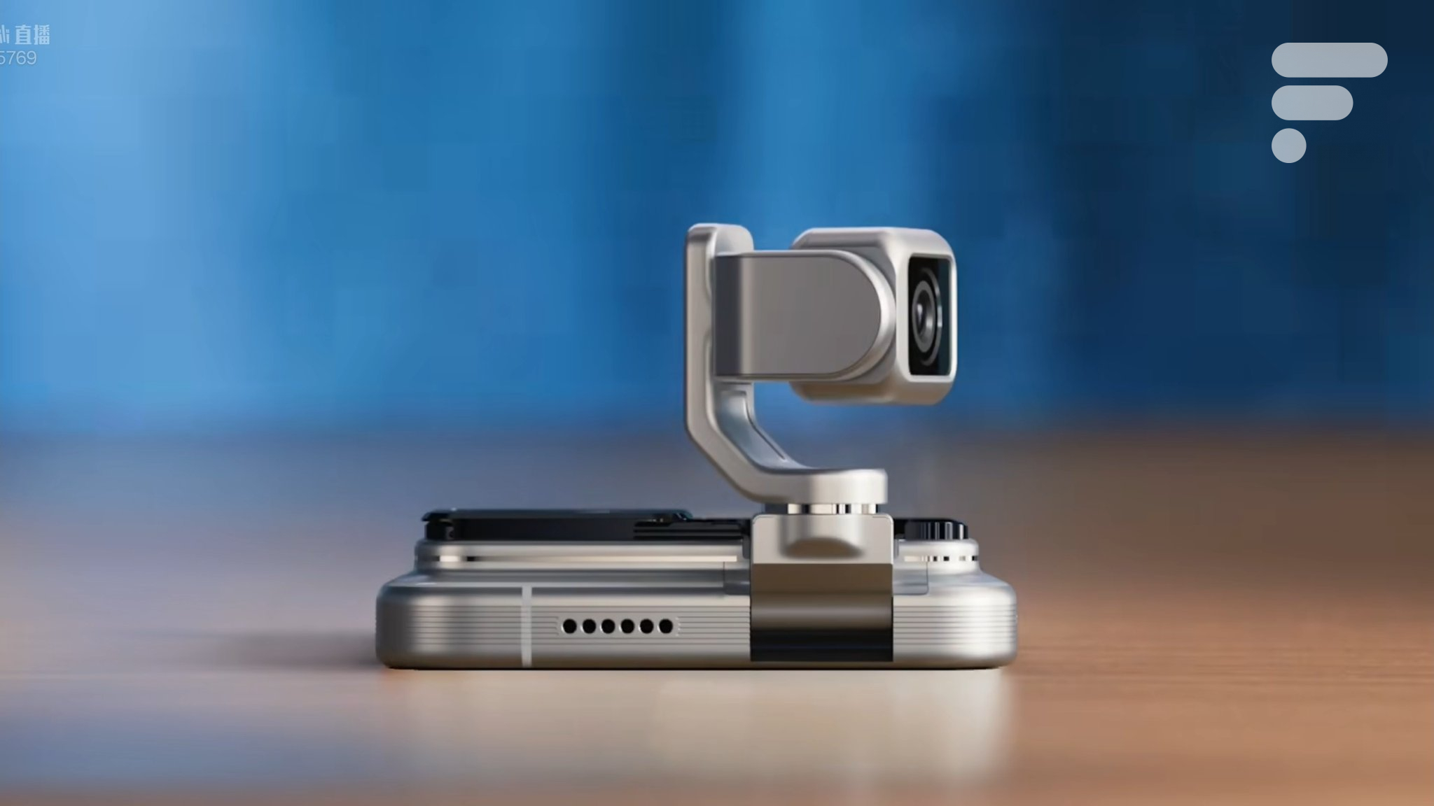Visuellement, ça ressemble à un petit bras articulé qui peut pivoter, s’incliner, et se repositionner dans plusieurs directions. Pensez à un mini-gimbal DJI, mais intégré directement dans votre smartphone. Le mécanisme semble robuste (du moins sur les rendus), avec ce qui ressemble à des moteurs pas-à-pas miniaturisés pour contrôler les mouvements avec précision.