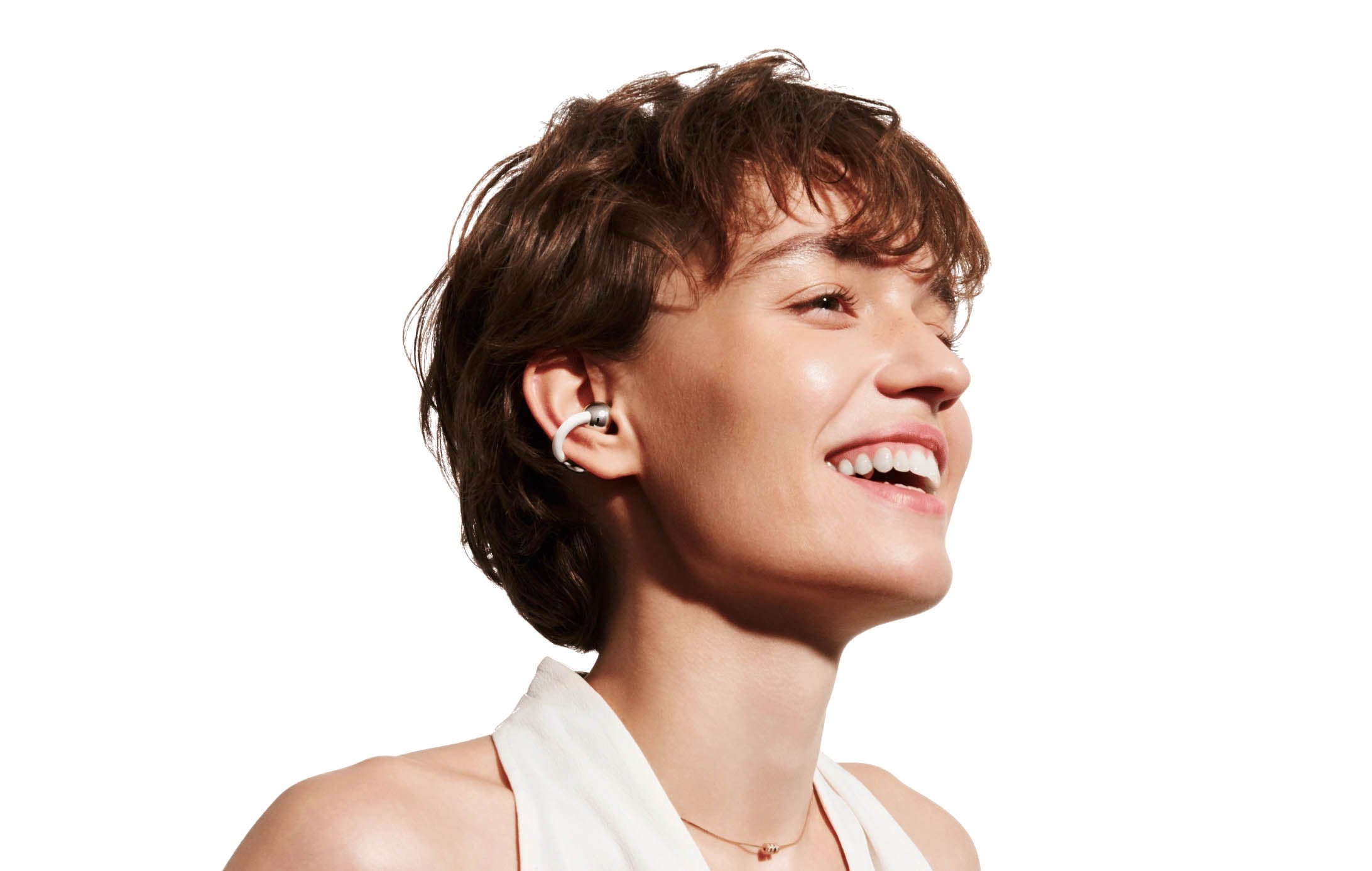 Les écouteurs, qui ont déjà été annoncés lors d’un événement organisé à Dubaï, s’appuient donc sur une architecture en forme de C, baptisée C-bridge, qui se clipse autour du pavillon grâce à un arceau flexible, très fin, reliant deux modules distincts. L’ensemble repose sur trois éléments principaux : une base de maintien, une boule acoustique dédiée à la diffusion du son, et l’arceau lui-même qui assure la liaison et la flexibilité.