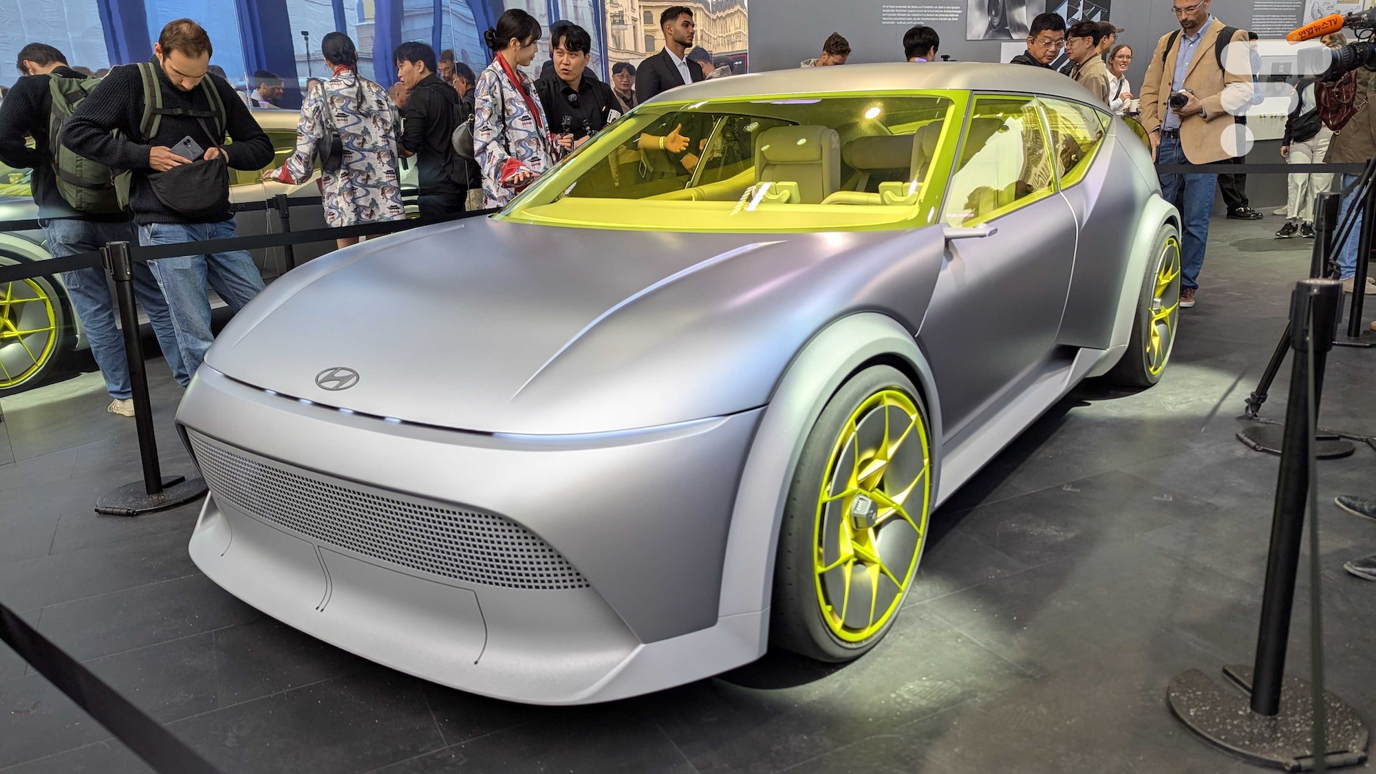 Pour autant, Hyundai nous l’assure : la voiture électrique de série sera très proche – se laissant aller à quelques confidences, comme la volonté de conserver l’aileron translucide. La visibilité arrière l’en remercie.