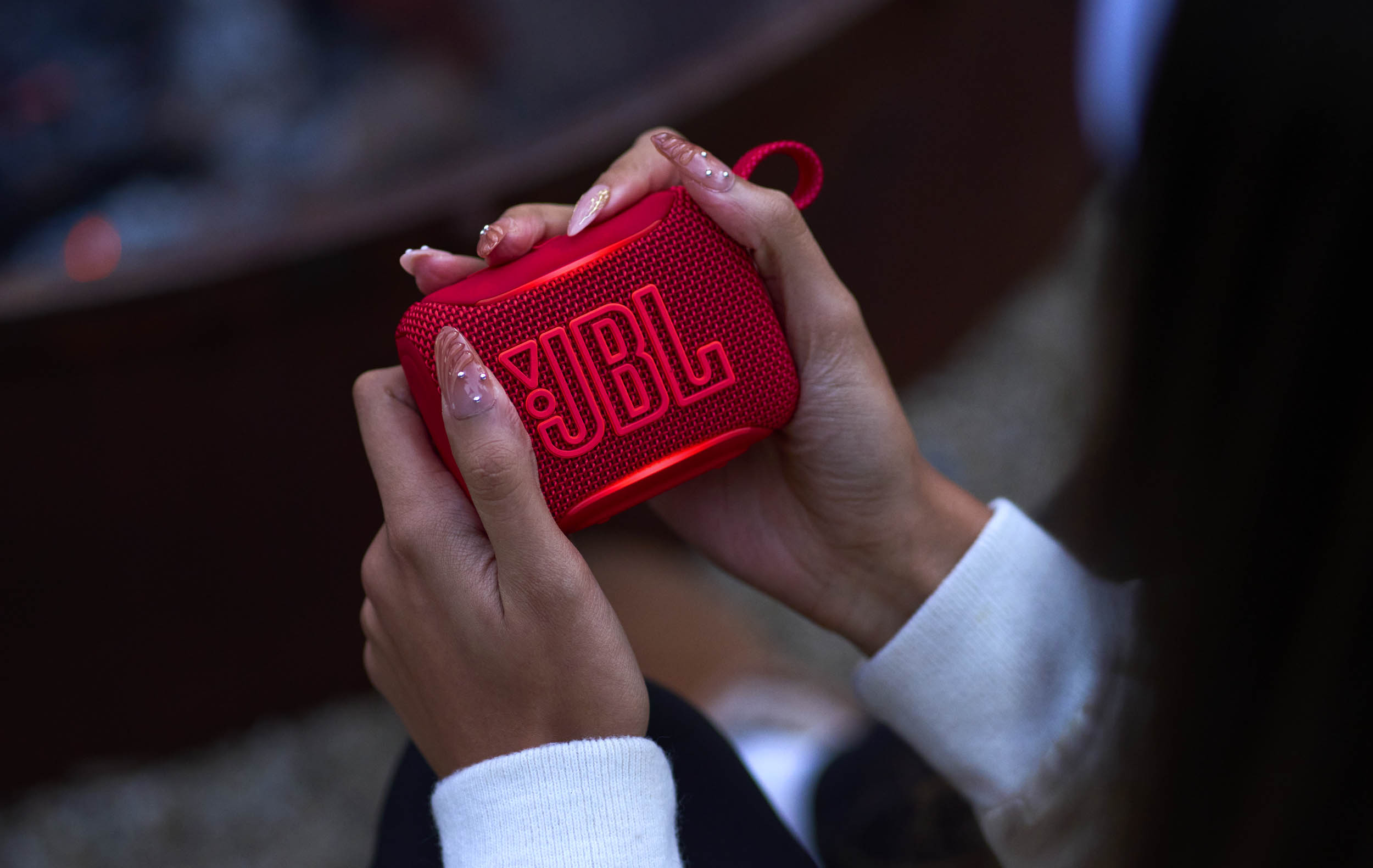La JBL Go 5 promet aussi un son 10 % plus puissant que le modèle précédent, selon le fabricant. La refonte de son logo — désormais creux et profilé — n’est pas qu’esthétique car, d’après JBL, cette modification contribue à améliorer la projection sonore et les performances globales du modèle.