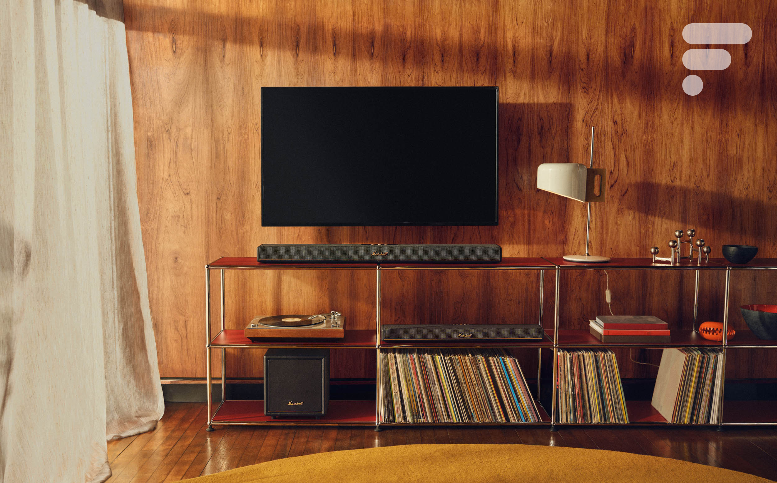 La Heston 60 n’est pas seulement esthétique, elle promet, selon le fabricant, un rendu sonore exceptionnel grâce à la prise en charge du Dolby Atmos et du DTS-X, pour plonger l’auditeur au cœur de l’action. Elle embarque sept amplificateurs de classe D pour alimenter les deux woofers de 3 pouces et les cinq haut-parleurs de 1,25 pouce. D’après Marshall, elle délivre une puissance crête de 56 W, avec une réponse en fréquences de 45 Hz à 20 kHz et une pression acoustique maximale de 89 dB.