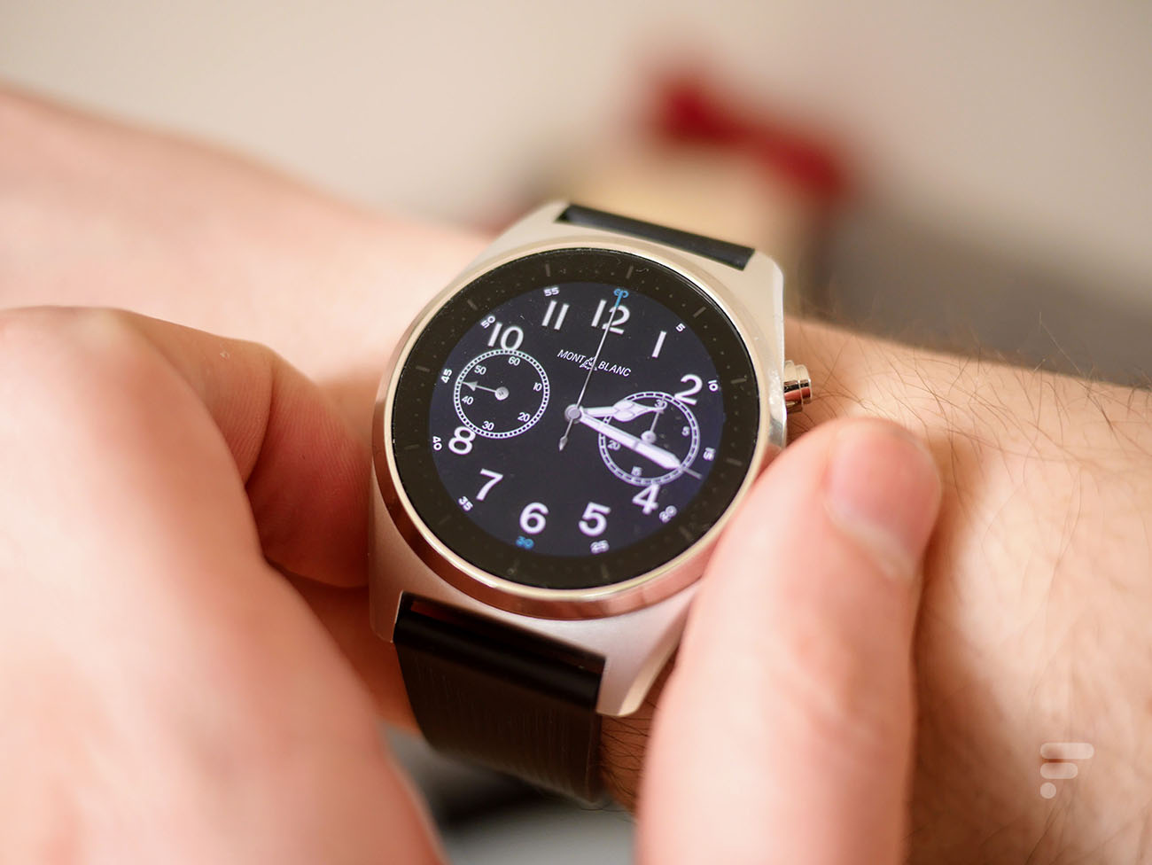 Du côté de la dalle, c’est une technologie Amoled qui a été adoptée par MontBlanc. De quoi permettre un affichage avec un excellent contraste, quelle que soit la condition de luminosité. Pour rappel, l’avantage de cette technologie est qu’elle n’intègre aucun rétroéclairage. Les pixels noirs ne sont donc pas illuminés et restent parfaitement noirs, y compris dans l’obscurité totale. Un atout qui prend tout son sens sur une montre connectée puisque l’interface de Wear OS fait la part belle au noir en arrière-plan.