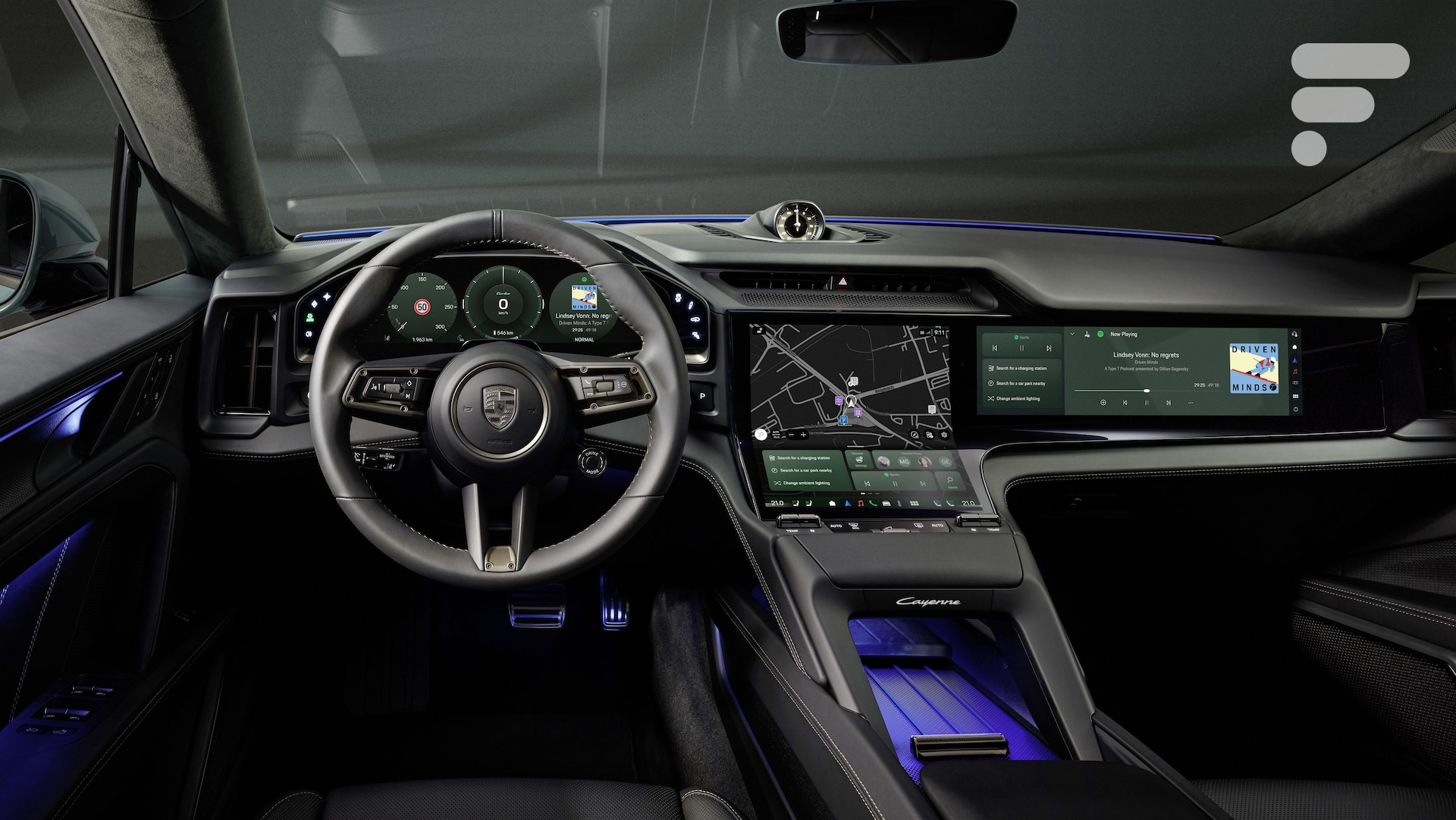 Porsche ne se contente pas d’empiler des écrans, elle revoit l’architecture même du poste de conduite autour d’un grand « Flow Display » courbé (on peut même dire plié) avec son nouveau Cayenne électrique que nous avons pu découvrir en Allemagne il y a quelques jours.