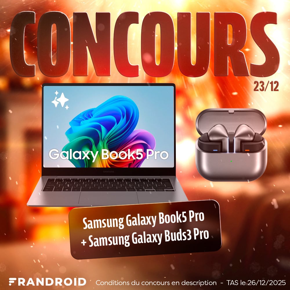 Quel cadeau choisir entre ces deux produits Samsung ? Le Galaxy Book 5 Pro ou les Galaxy Buds 3 Pro ? Pas besoin de trancher, on vous fait gagner les deux lots en un super pack pour notre calendrier de l’Avent #FrandroidOffreMoi. Participez au concours pour essayer de remporter le PC portable et les écouteurs sans fil.