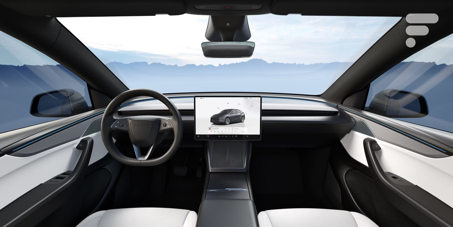L’évolution la plus importante est en provenance directe du Model Y Performance : l’écran de 15,6 pouces a été remplacé par une dalle QHD de 16 pouces, avec des bords amincis.