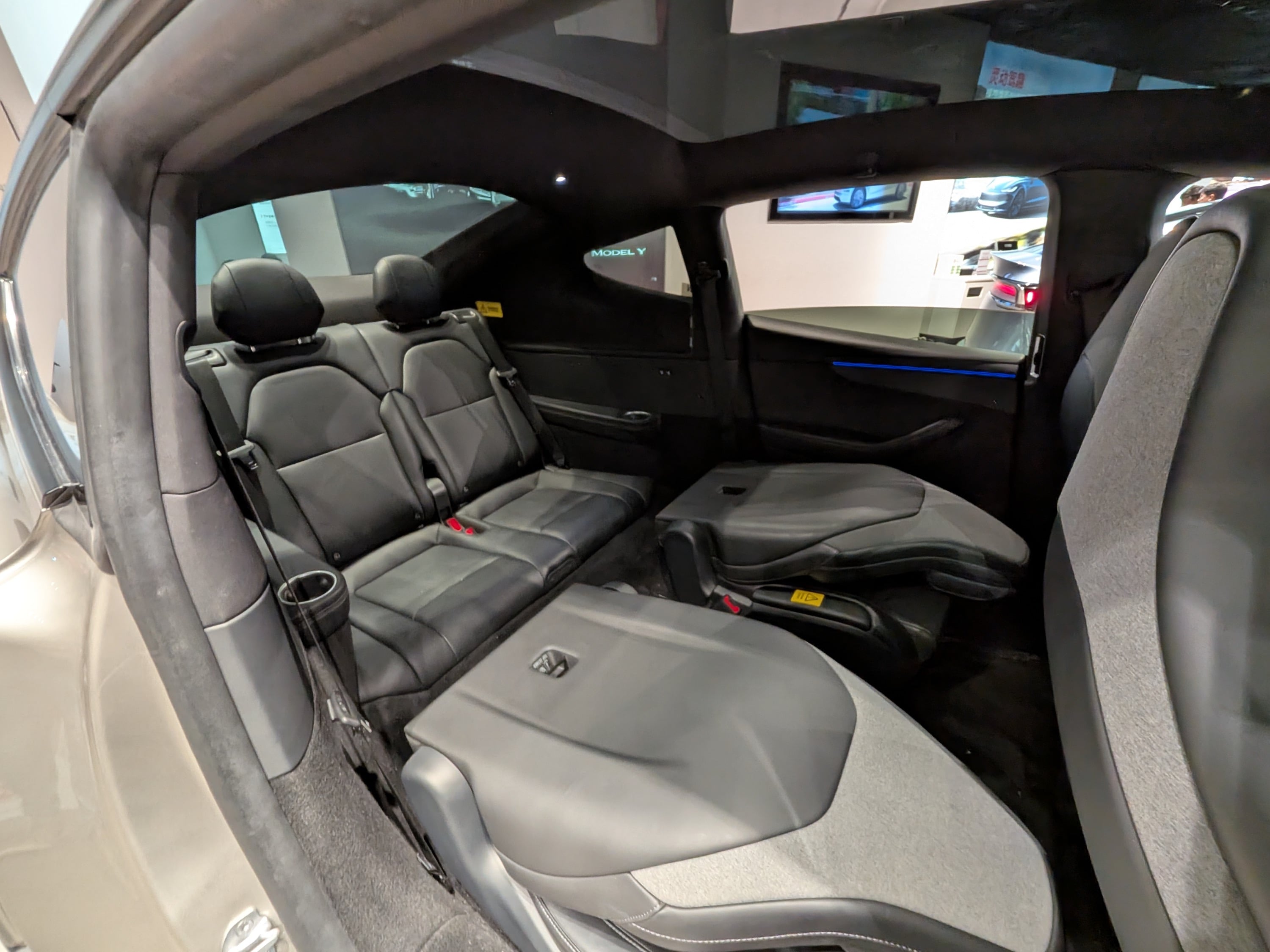 D’accord, mais la vraie magie opère au milieu. Tesla a installé deux « fauteuils capitaines » indépendants. Le gain de place est immédiat car un couloir central permet de circuler librement jusqu’au fond sans avoir à rabattre fébrilement la banquette.