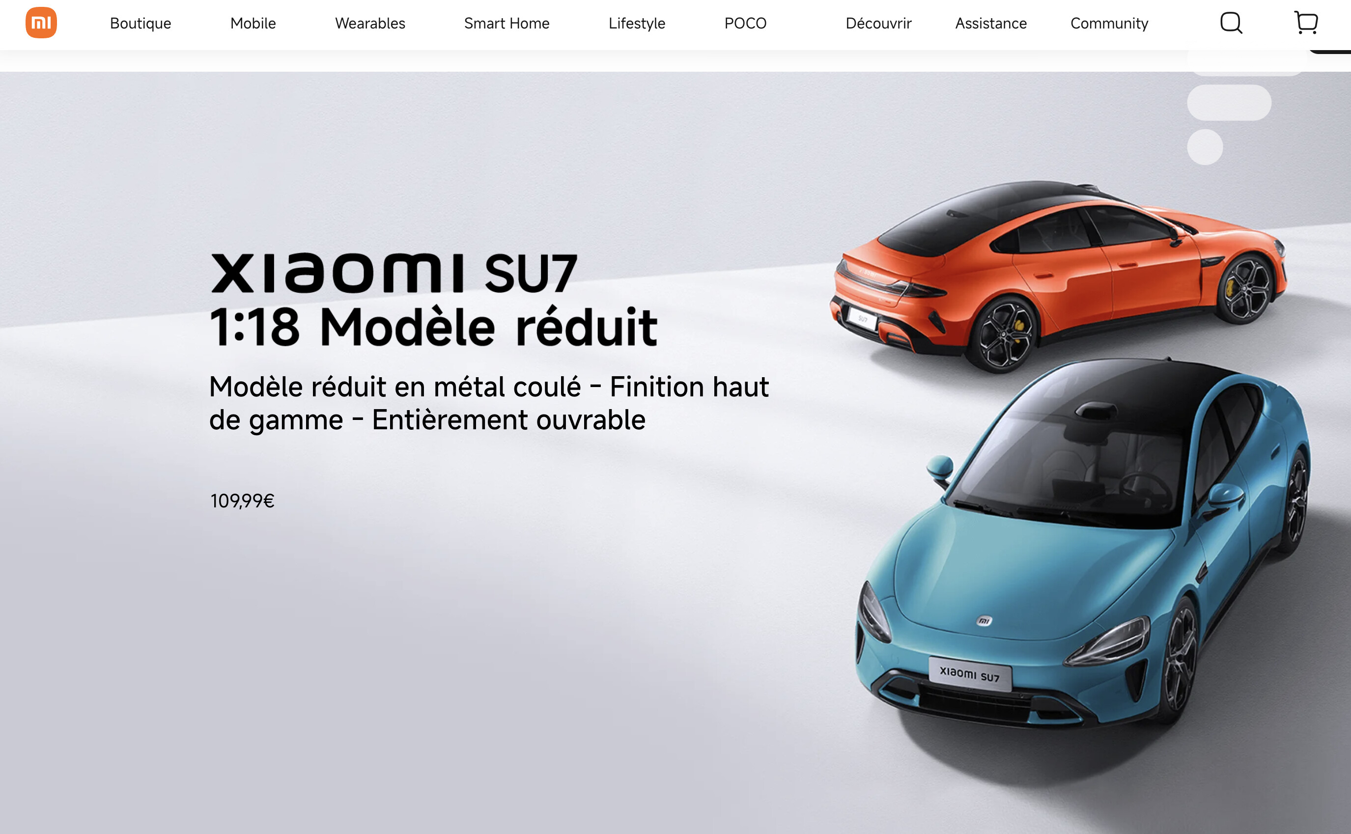 La situation est simple : Xiaomi France vient officiellement de référencer la Xiaomi SU7 sur sa boutique en ligne. Oui, la fiche produit existe. Oui, vous pouvez l’ajouter au panier. Et oui, Guillaume Chaingeau, le patron de la marque en France, nous avait prévenus : « L’ouverture des magasins a aussi pour objectif de préparer l’arrivée du véhicule électrique ».