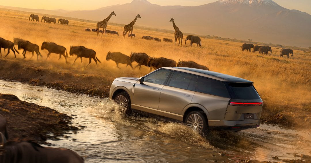 Il mesure en effet plus de 5,2 mètres de long, même si le chiffre exact n’a pas encore été confirmé par le constructeur. La face avant est quant à elle très anguleuse et verticale, avec des lignes qui semblent reprises du grand 4X4 britannique. Même chose pour le profil,avec son toit très horizontal, qui s’offre une grande surface vitrée. Le tout est complété par un petit becquet et une lunette légèrement inclinée. Le GX s’offre des poignées affleurantes, bien qu’elles seront interdites en Chine dès le 1er janvier 2027.