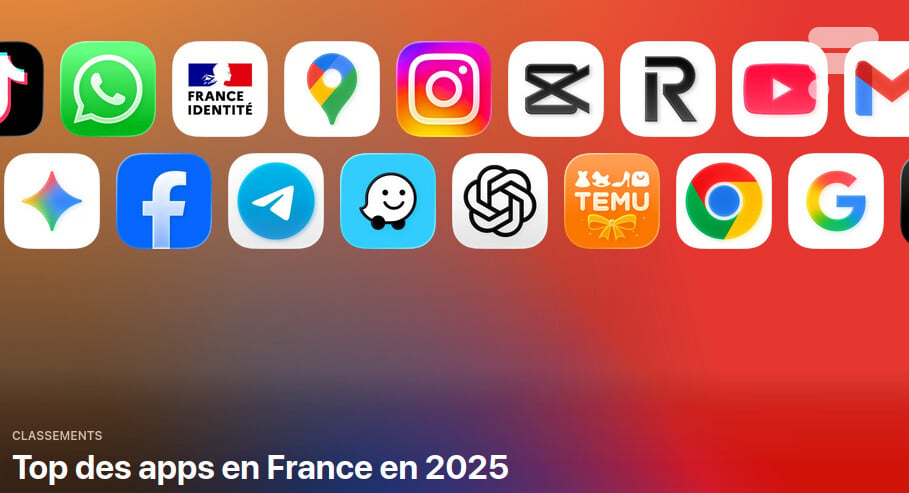 L’appli dépasse aussi des indémodables, comme Chrome, Google, WhatsApp ou France Identité, respectivement 3e, 4e, 7e et 8e du classement. Il faut dire que ChatGPT profite aussi d’un effet de mode, là où ces autres outils sont sans doute installés depuis longtemps sur les iPhone de tout le monde et ne remontent donc plus trop dans les classements. Instagram et Google Maps ferment quand même la marche du Top 10, indéboulonnable.
