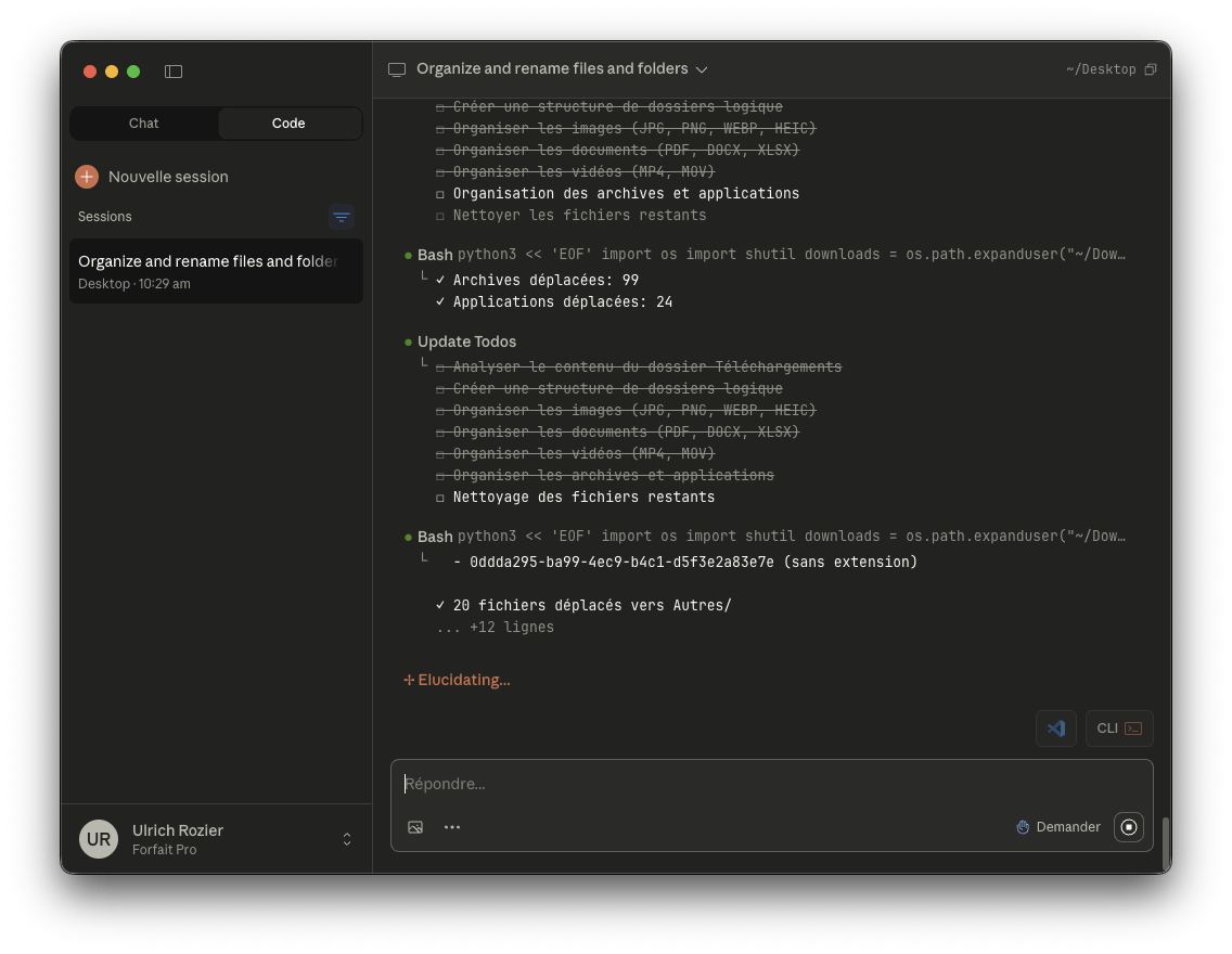 - Modifier et renommer des fichiers (ex: « Renomme tous ces reçus par date et montant »).