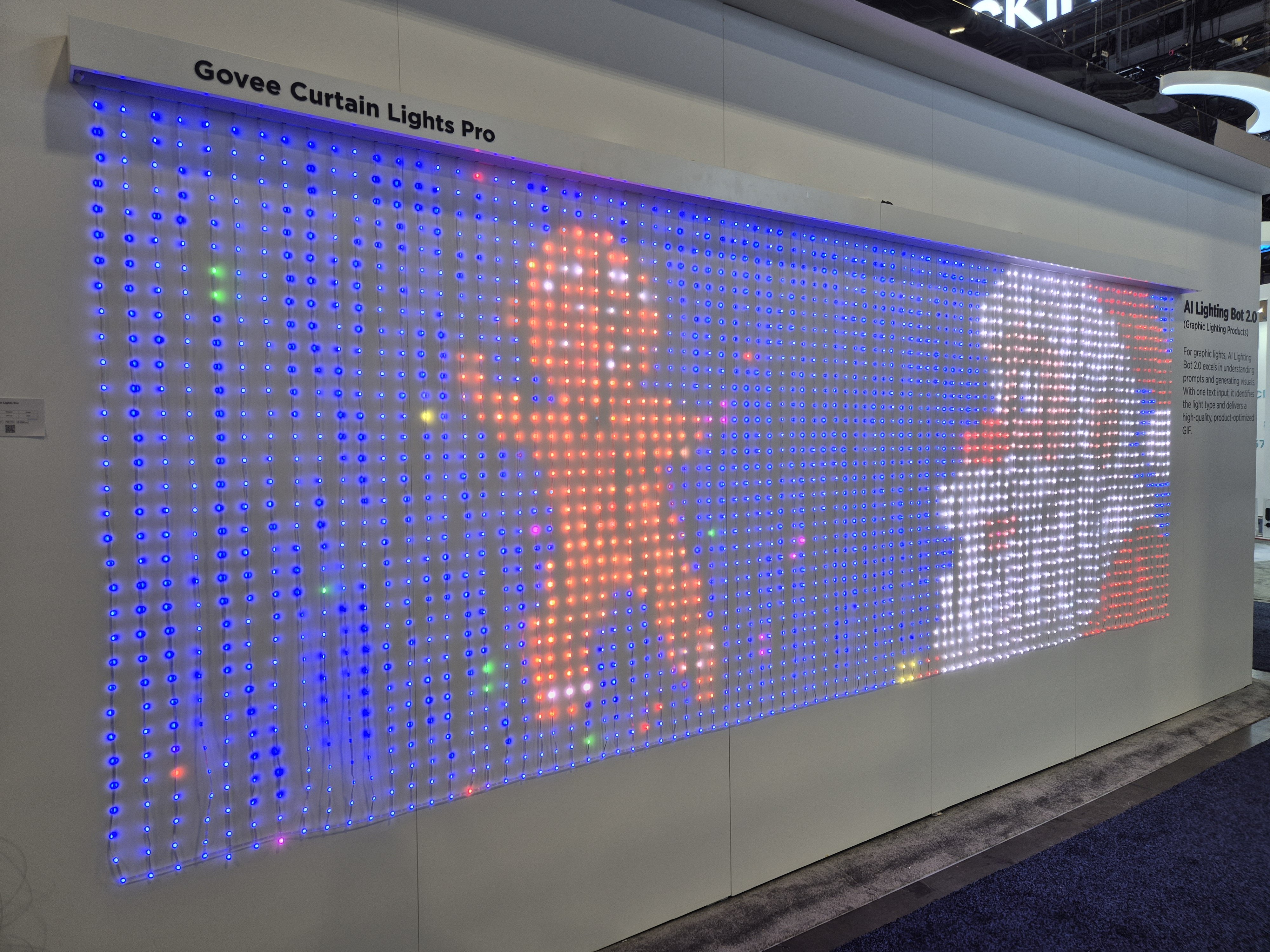 Pour mettre cette promesse technologique à l’épreuve, Govee mettait en avant des décorations de Noël sur un rideau de LED, le Curtain Lights Pro. J’ai pu ensuite manipuler le dispositif moi-même via l’application Govee et décidé de pousser l’IA dans ses retranchements en abandonnant les paysages génériques pour lui demander quelque chose de très spécifique : « fais-moi un Samoyède ». Le résultat a été immédiat et franchement bluffant.