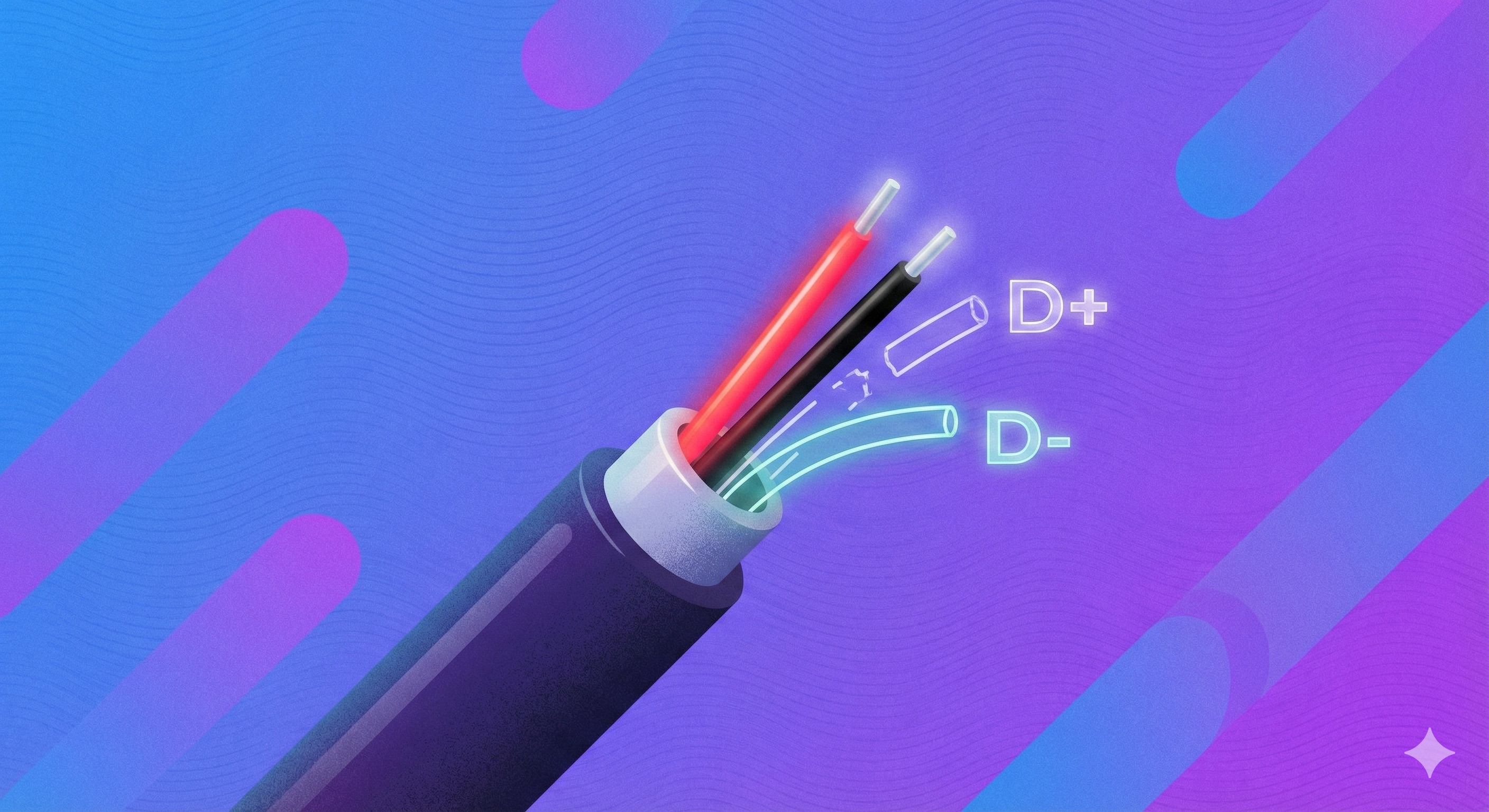 - Deux voies pour les données (D+ et D-) : elles permettent le dialogue numérique.