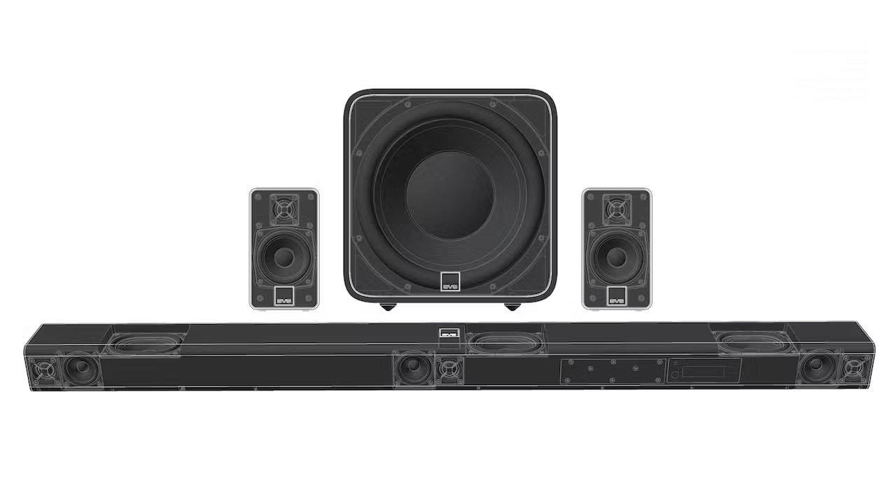 La barre de son SVS R|Evolution adopte une approche technique inhabituelle pour ce type de produit. En effet, selon le fabricant, elle s’articule autour d’une architecture acoustique 3 voies dédiée pour chacun des canaux gauche, centre et droit, mobilisant neuf haut-parleurs alimentés par 180 watts d’amplification. Cette conception a pour principal but de reproduire les performances d’un système home cinéma traditionnel dans un format plus accessible.
