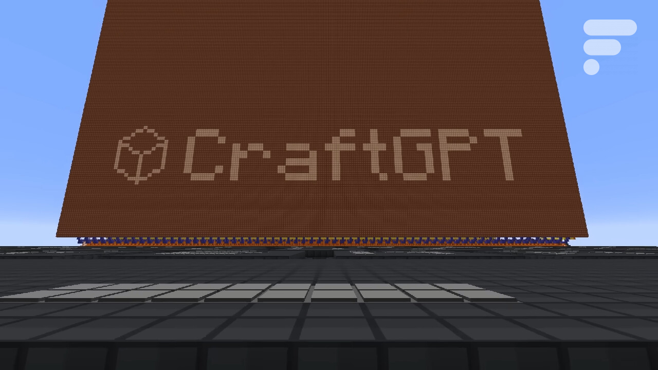 Pour concevoir son CraftGPT, Sammyuri a demandé directement de l’aide auprès de… ChatGPT. Un projet final qui prend la forme d’un PC portable avec un écran dédié à CraftGPT occupant un volume de 1 020 x 260 x 1 656 blocs, soit 439 millions de blocs.