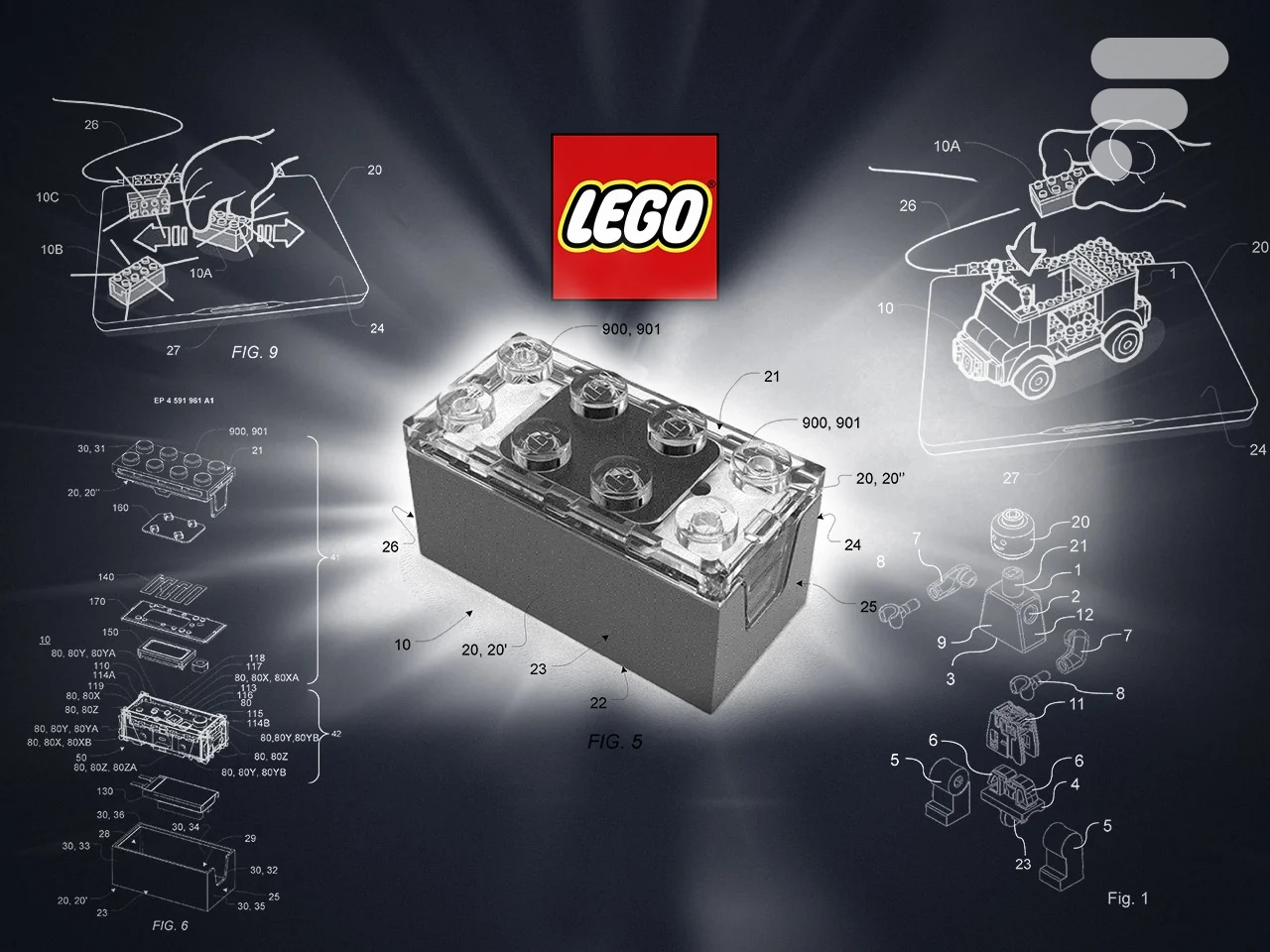 Au centre de tout, il y a la Smart Brick. Visuellement, c’est une brique de 2×4 tenons, un format standard. Mais à l’intérieur, l’ingénierie est dense. Les brevets (notamment le EP4591961A1) décrivent un appareil autonome intégrant un processeur, une batterie, un haut-parleur, un microphone et un système d’éclairage LED.
