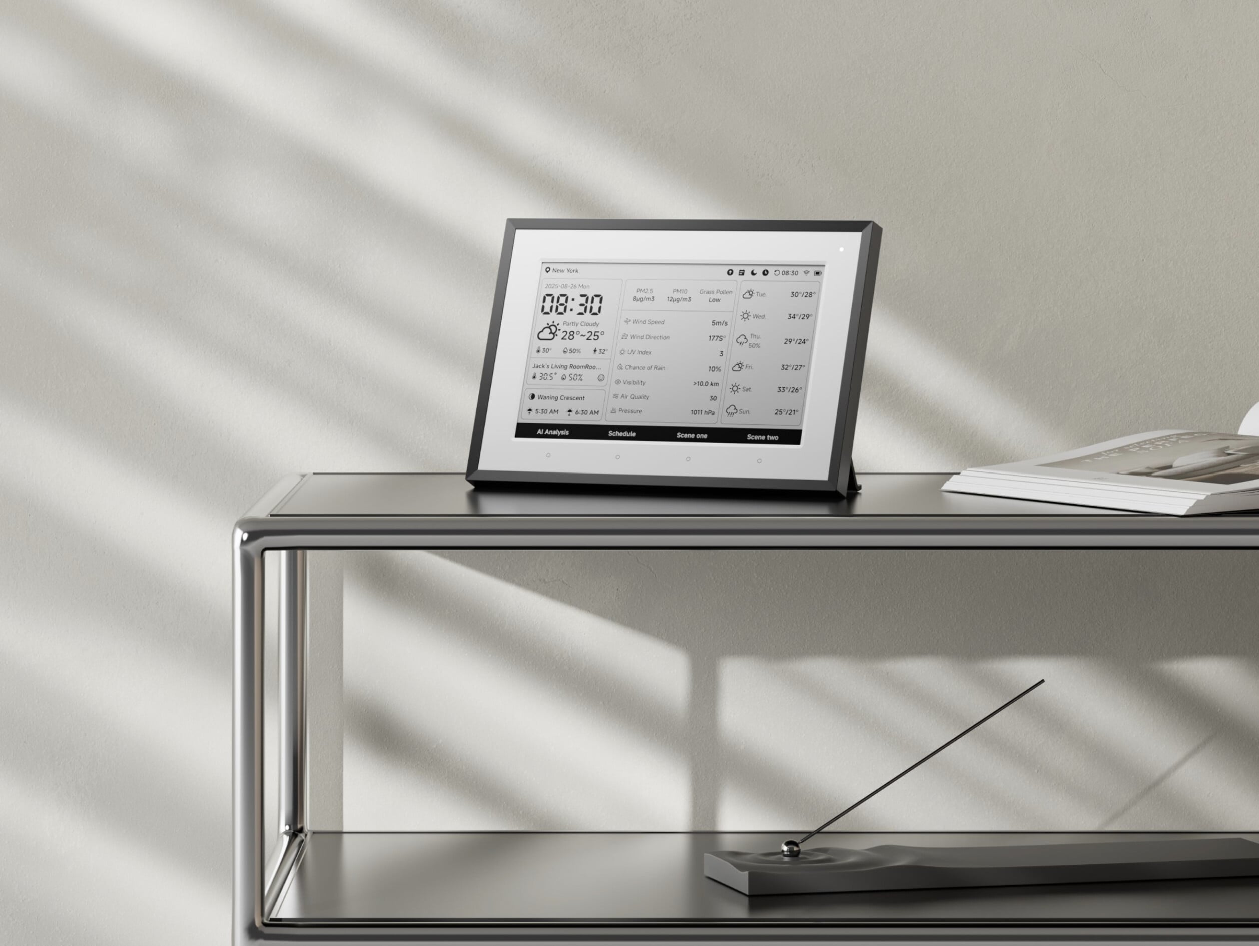 Pourquoi ? Parce que c’est une réponse simple à un besoin réel : arrêter de sortir son smartphone toutes les deux minutes pour vérifier l’heure, la météo ou son prochain rendez-vous. SwitchBot a choisi la technologie parfaite pour ça : l’E-Ink.