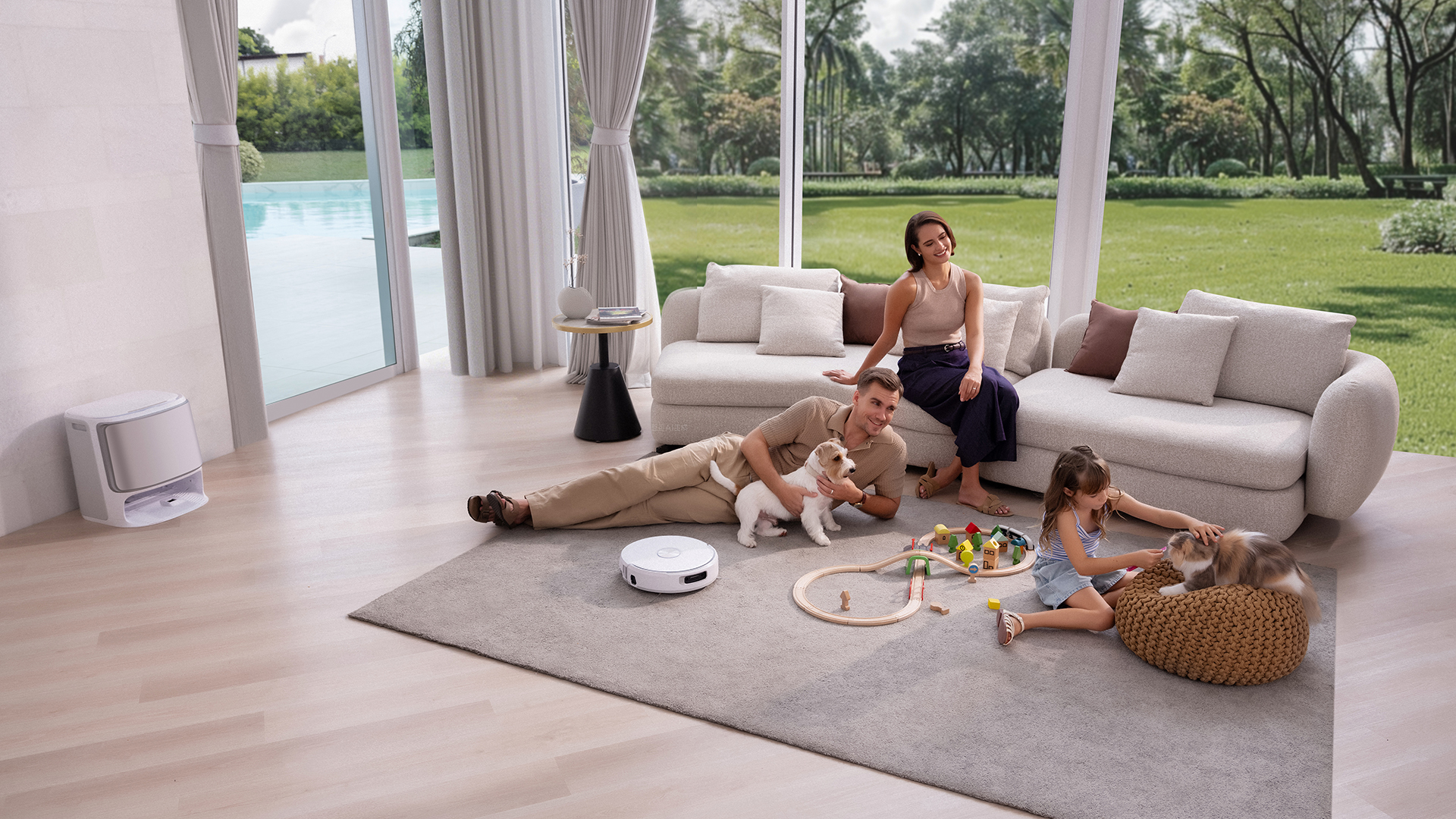 Les serpillères extensibles sont de la partie, comme le système d’aspiration (qui passe en revanche à 15 000 Pa) et le dispositif anti-enchevêtrement. La base, capable recueillir les déchets, ravitailler l’aspirateur et nettoyer les serpillères, est aussi de la partie pour vous simplifier la vie au quotidien.