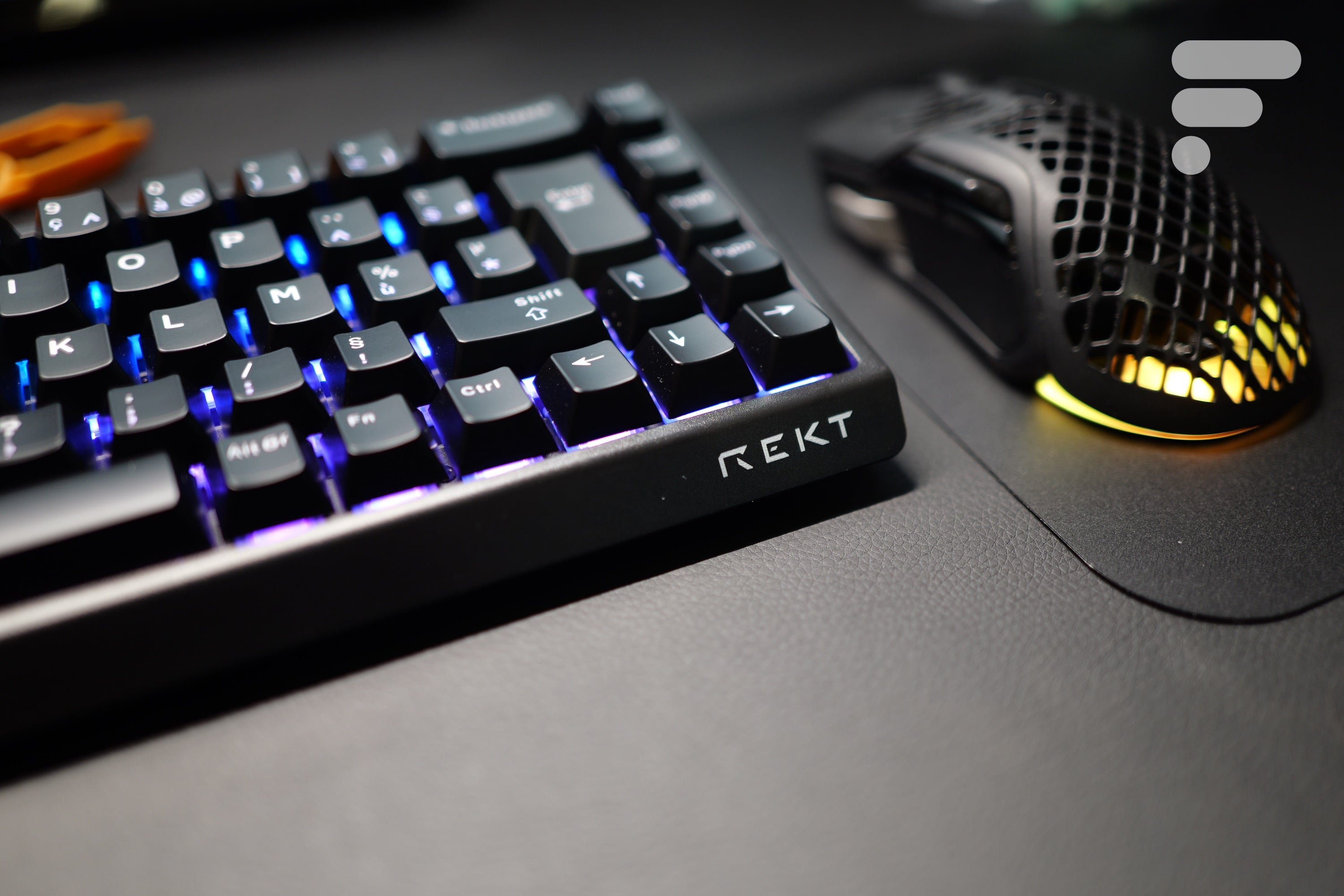 REKT a également un modèle nommé Hiro 60, un peu moins cher mais techniquement semblable. Ce dernier s’arrête net après la touche Entrée. Pas de flèches directionnelles, pas de touches « Suppr » ou « Page Précédente » dédiées. Le Shogun 68 testé ici est à peine plus large (environ 3 cm), mais il intègre les flèches directionnelles.